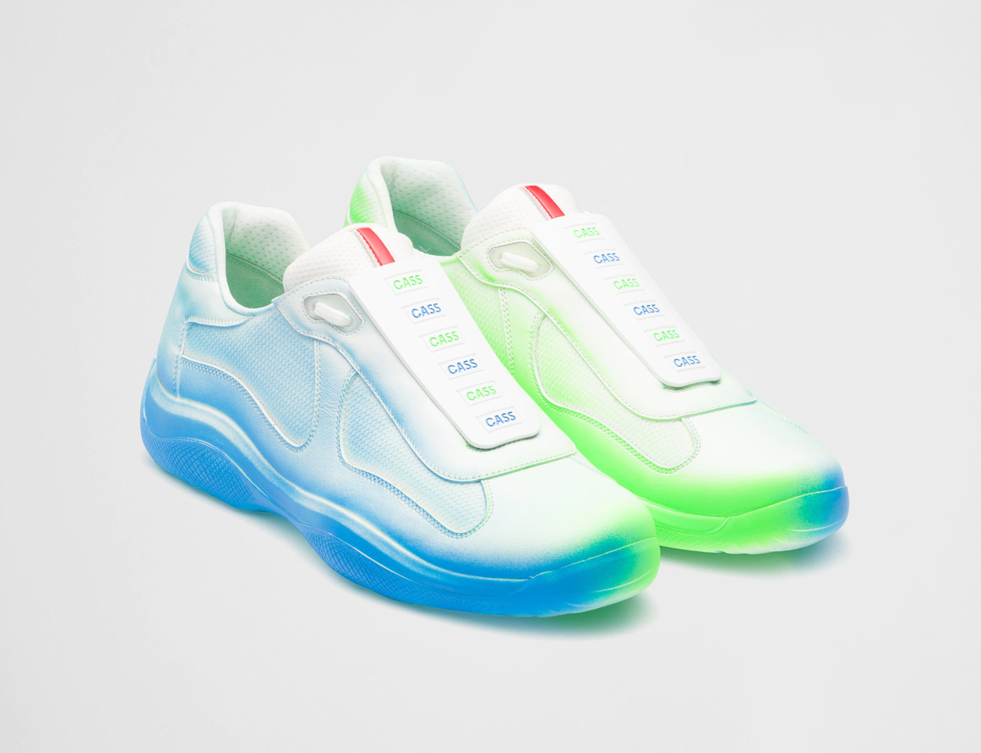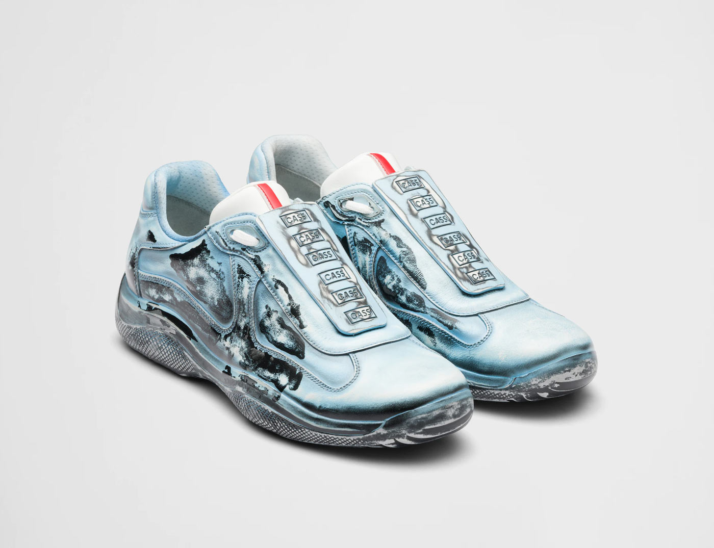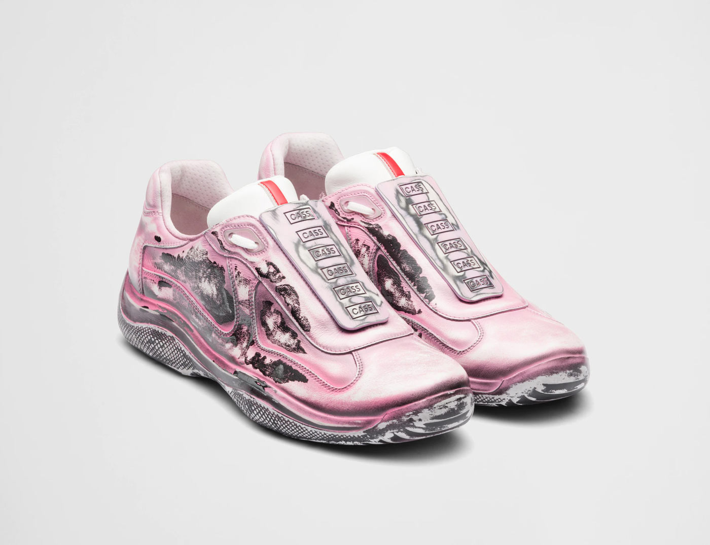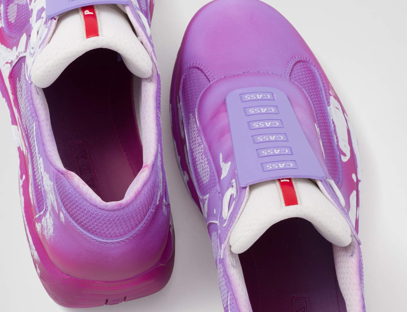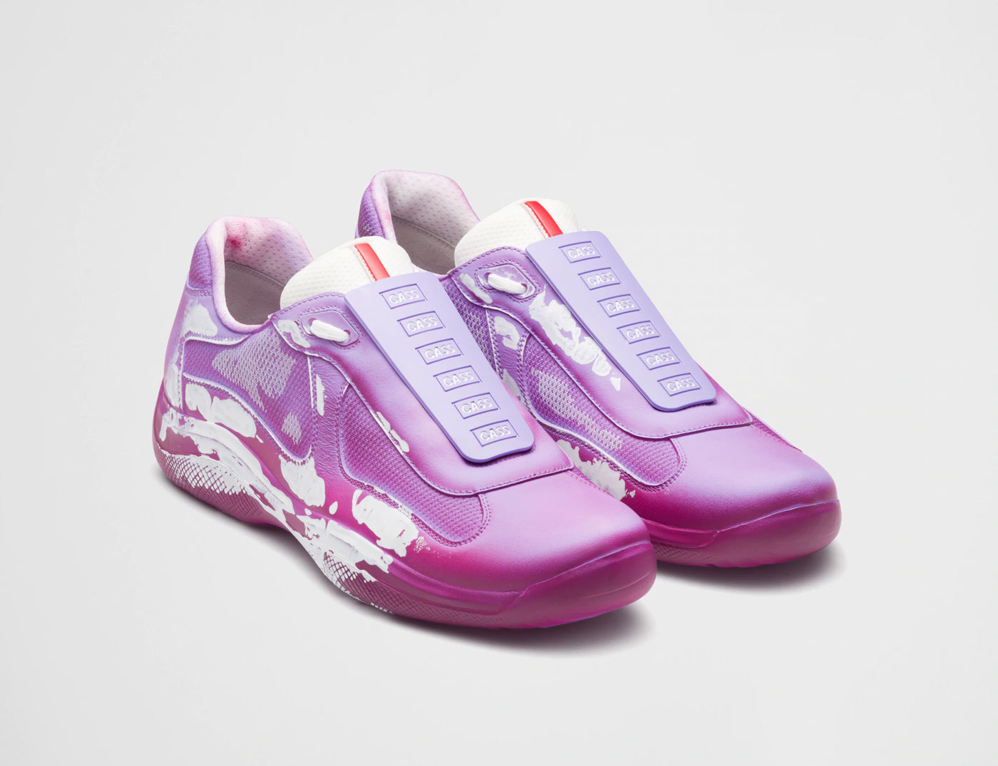 Artist Cassius Hirst reimagined Prada’s America’s Cup sneaker, creating four new styles in 22 variations. Each Cass x Prada sneaker is one-of-a-kind, hand-painted by Hirst – who spray-painted his first pair of sneakers at 14 as gift for his father Damien (yes, that Damien). Limited to 3,000 pairs globally, the Cass x Prada America’s Cup sneaker ($1,790.00) is available exclusively at select Prada boutiques and prada.com.