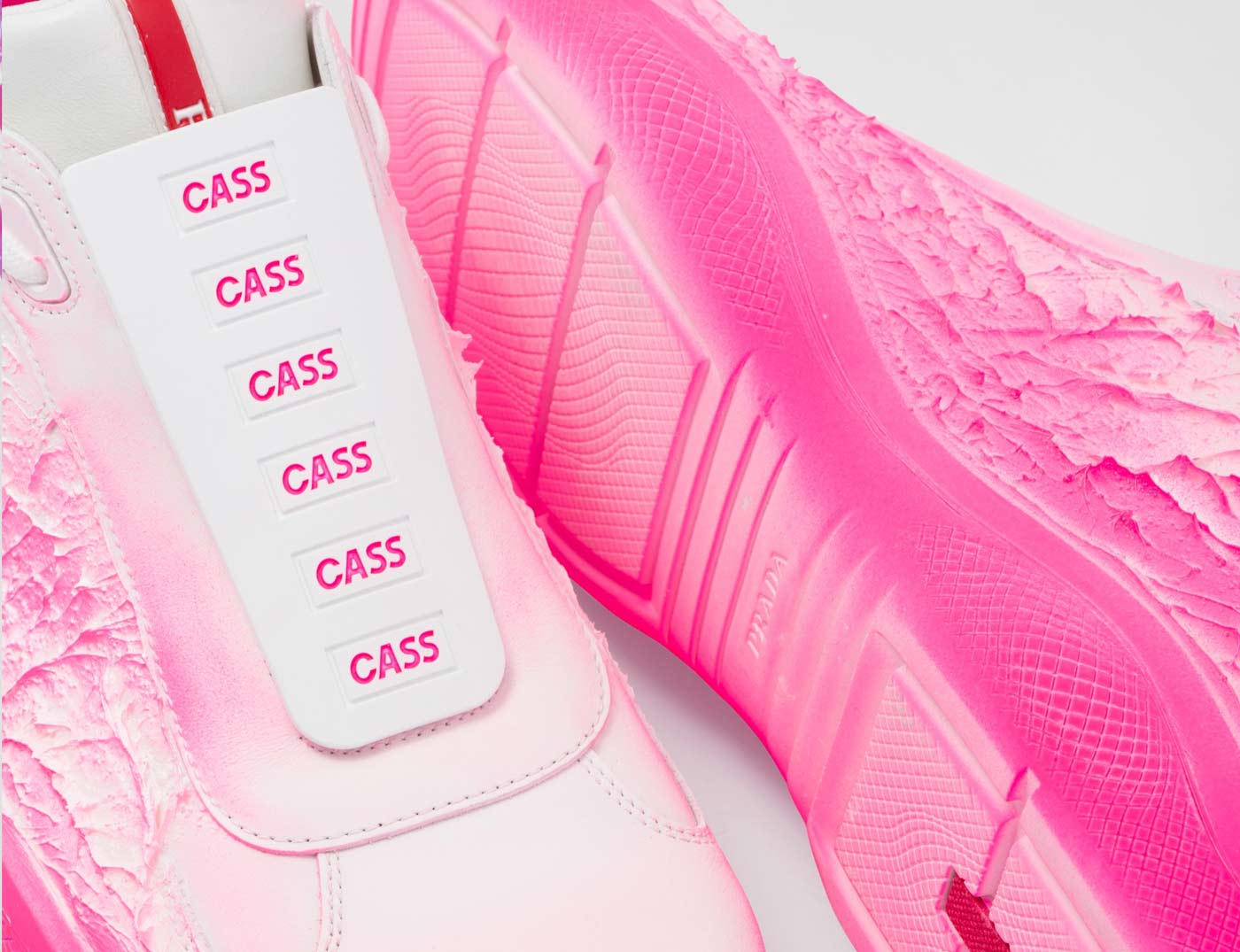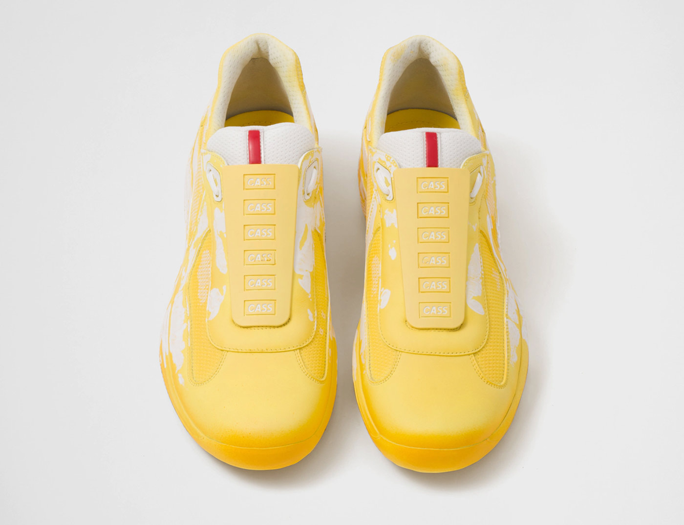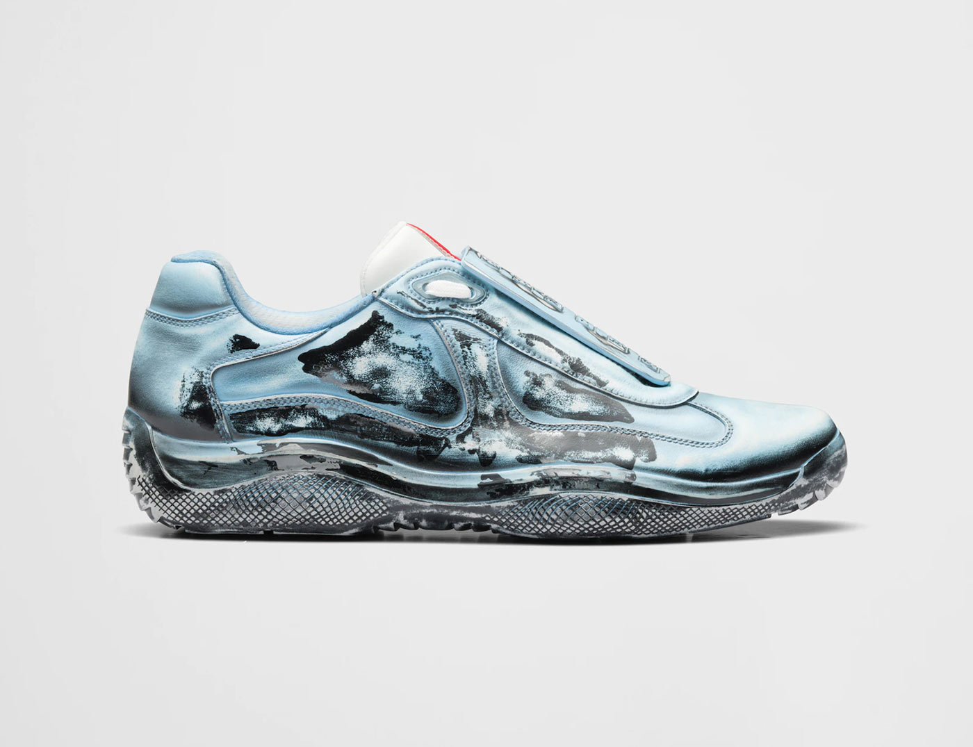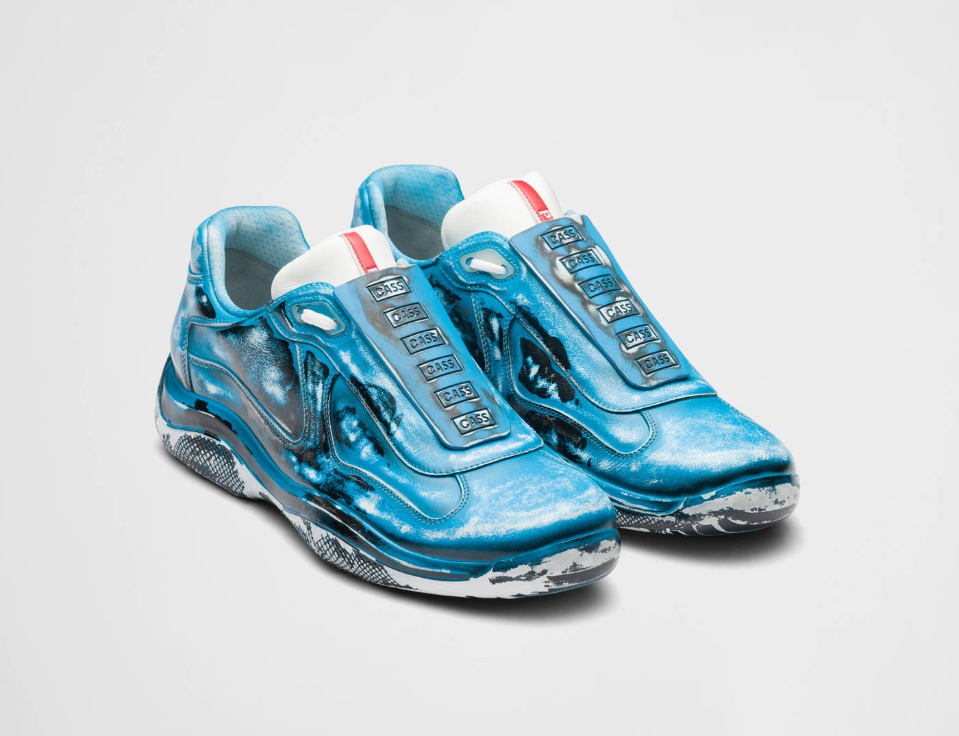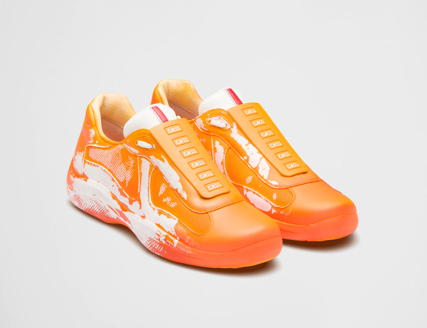 Artist Cassius Hirst reimagined Prada’s America’s Cup sneaker, creating four new styles in 22 variations. Each Cass x Prada sneaker is one-of-a-kind, hand-painted by Hirst – who spray-painted his first pair of sneakers at 14 as gift for his father Damien (yes, that Damien). Limited to 3,000 pairs globally, the Cass x Prada America’s Cup sneaker ($1,790.00) is available exclusively at select Prada boutiques and prada.com.