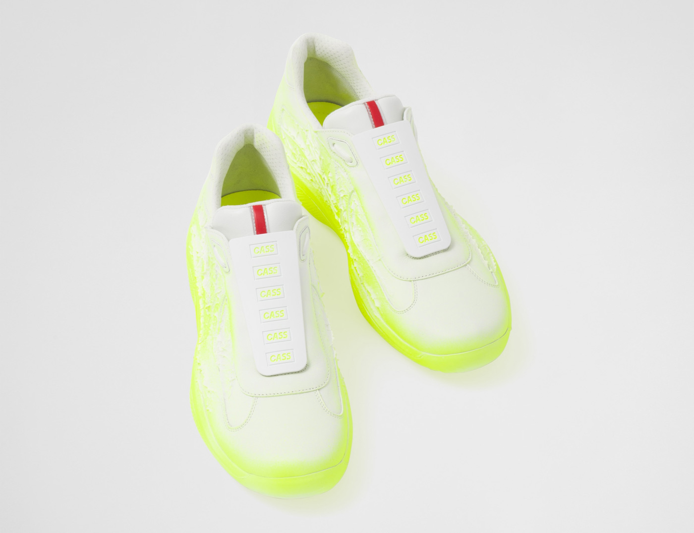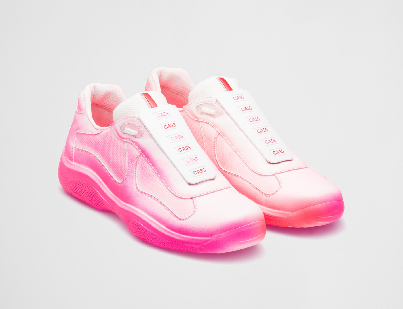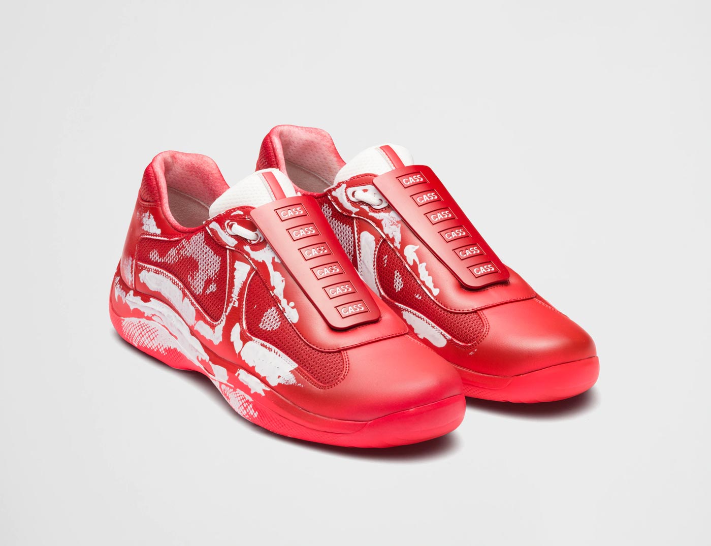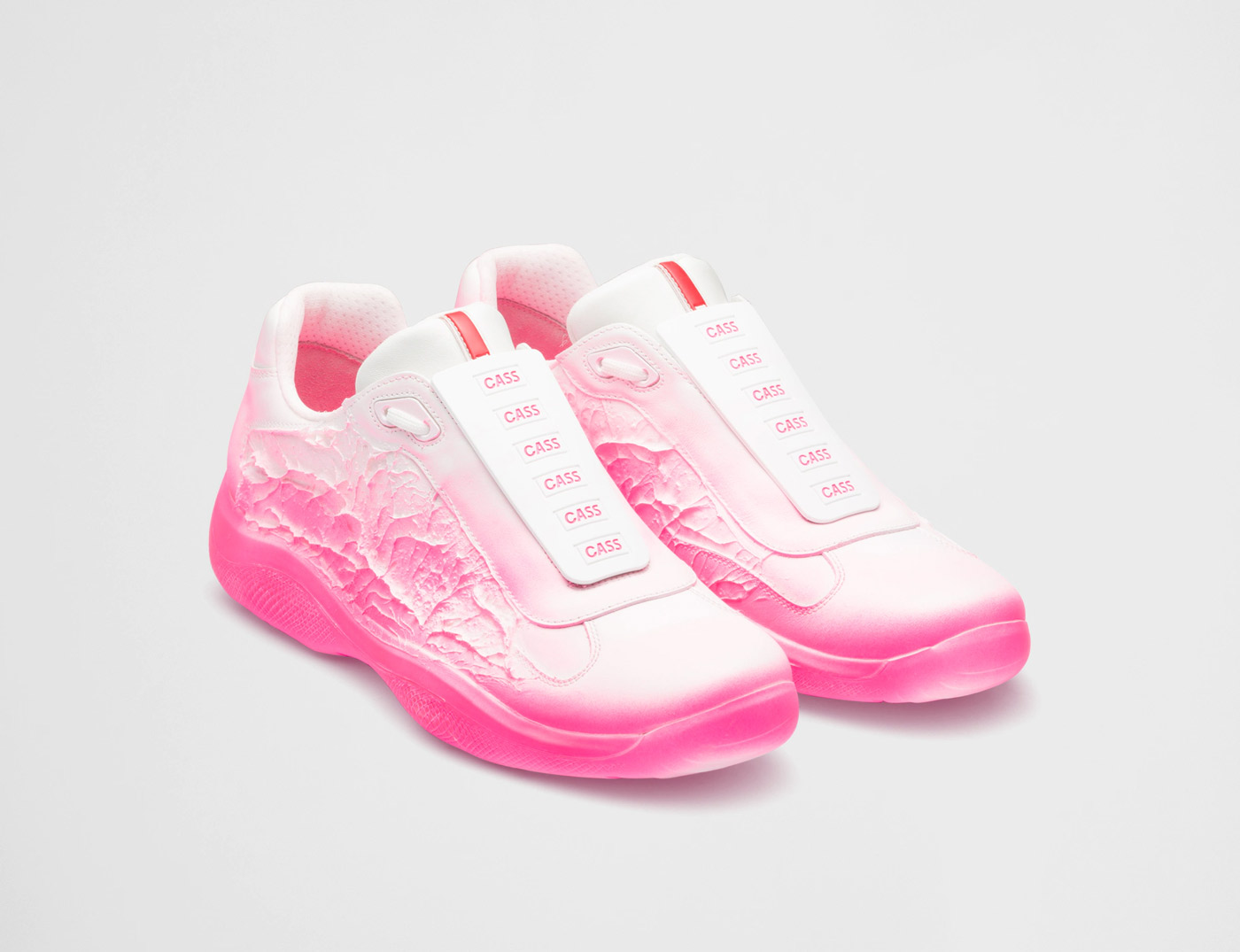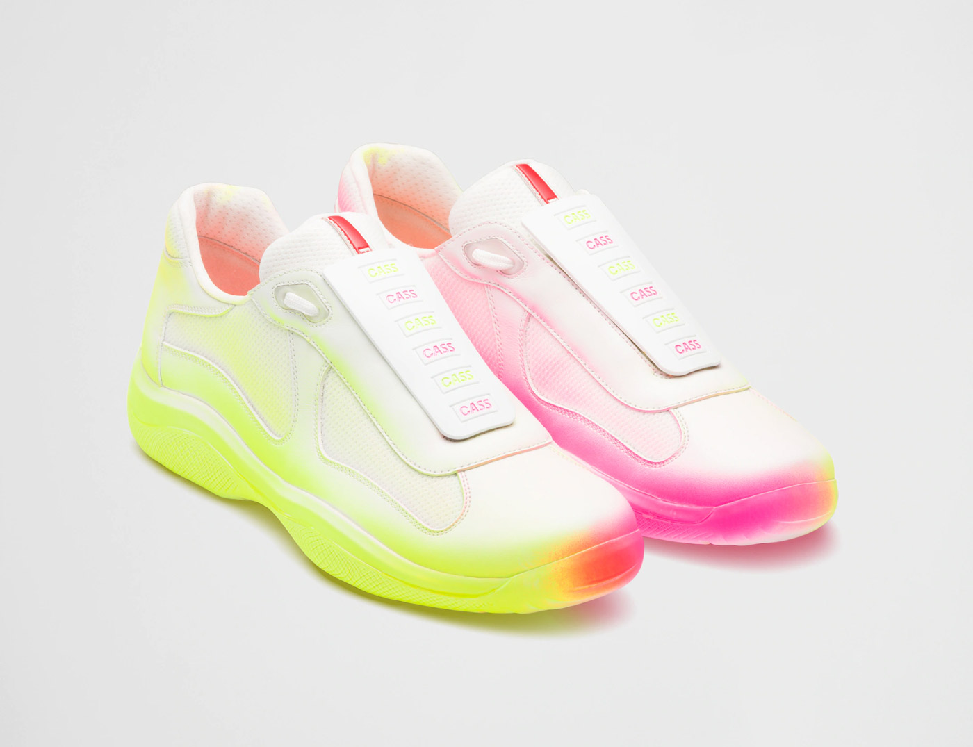 Artist Cassius Hirst reimagined Prada’s America’s Cup sneaker, creating four new styles in 22 variations. Each Cass x Prada sneaker is one-of-a-kind, hand-painted by Hirst – who spray-painted his first pair of sneakers at 14 as gift for his father Damien (yes, that Damien). Limited to 3,000 pairs globally, the Cass x Prada America’s Cup sneaker ($1,790.00) is available exclusively at select Prada boutiques and prada.com.