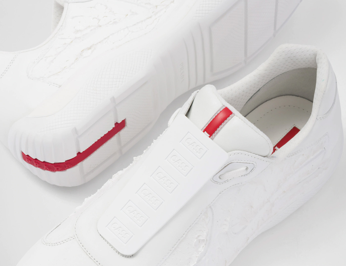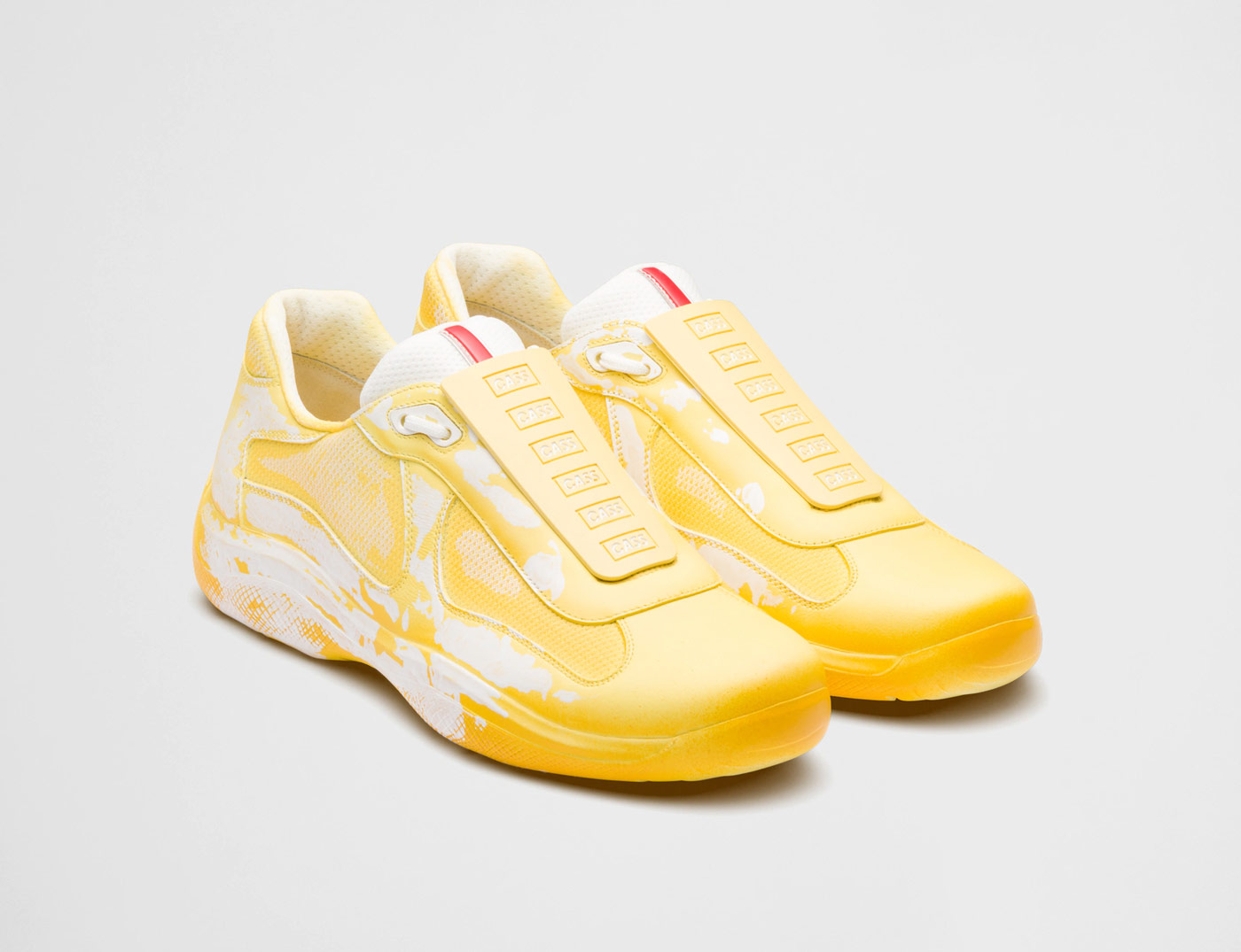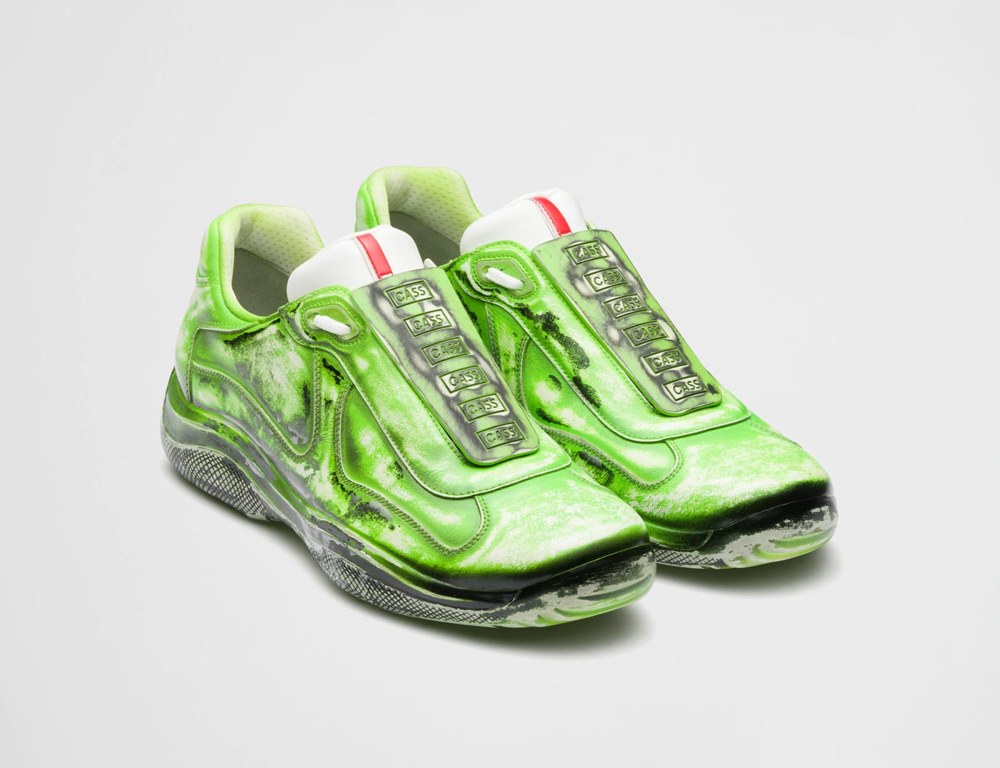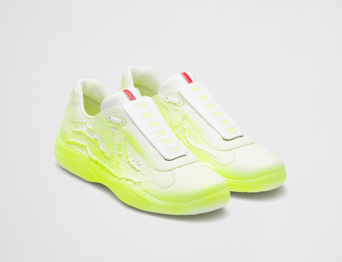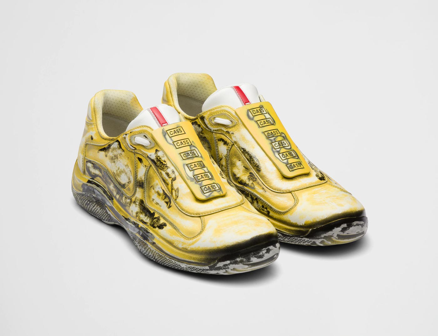 Artist Cassius Hirst reimagined Prada’s America’s Cup sneaker, creating four new styles in 22 variations. Each Cass x Prada sneaker is one-of-a-kind, hand-painted by Hirst – who spray-painted his first pair of sneakers at 14 as gift for his father Damien (yes, that Damien). Limited to 3,000 pairs globally, the Cass x Prada America’s Cup sneaker ($1,790.00) is available exclusively at select Prada boutiques and prada.com.