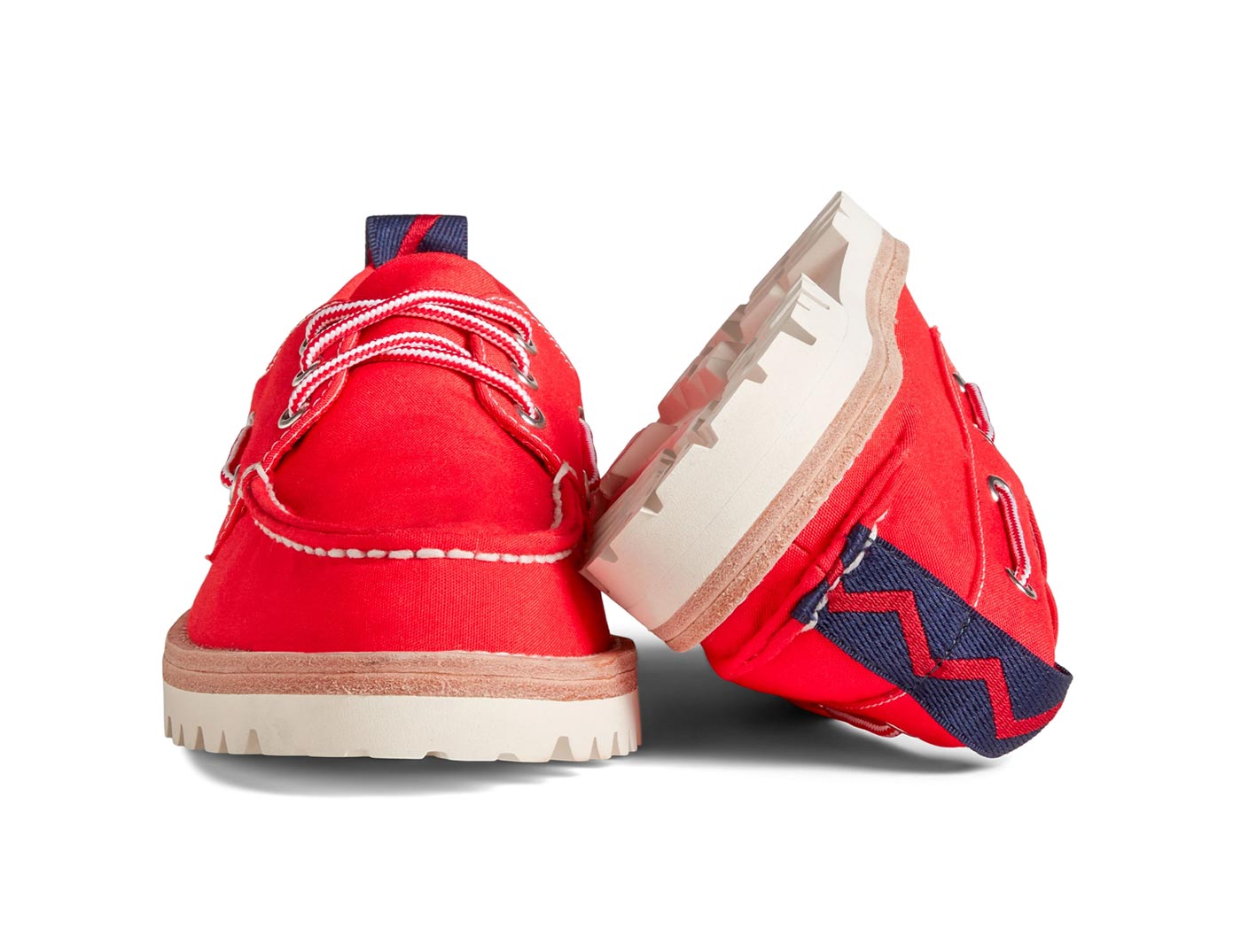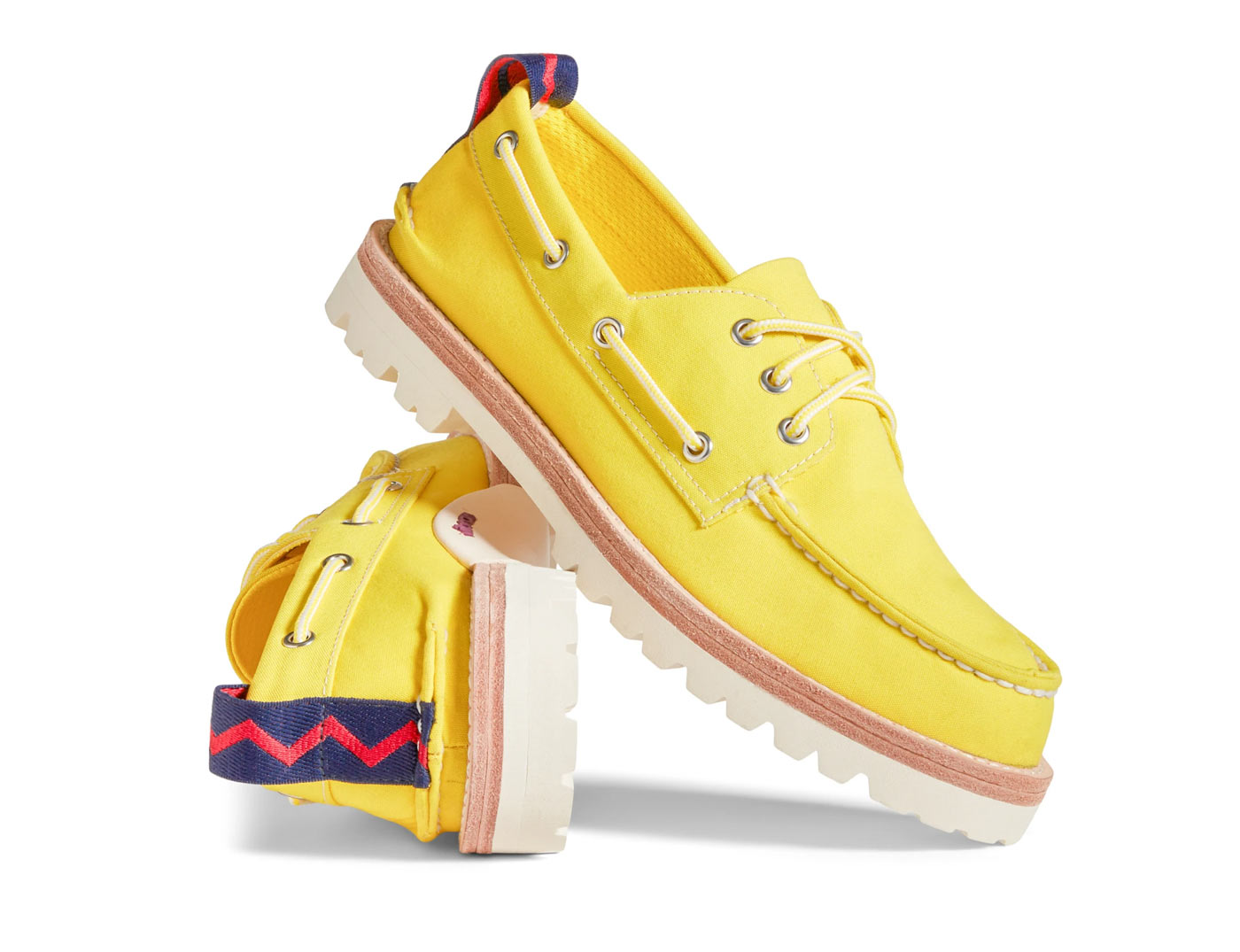 Sperry teamed up with Rowing Blazers to give the original boat shoe a modern makeover. The limited edition Rowing Blazers x Sperry loafer keeps the best elements of the iconic silhouette – moc toe construction and 360° lacing – while adding a new canvas-look upper made from upcycled plastics. Each shoe sits on a rugged Vibram® rubber lug sole with a shock-absorbing EVA heel cup for added comfort. Two-tone laces and zig zag striped heel pulls round out the design.