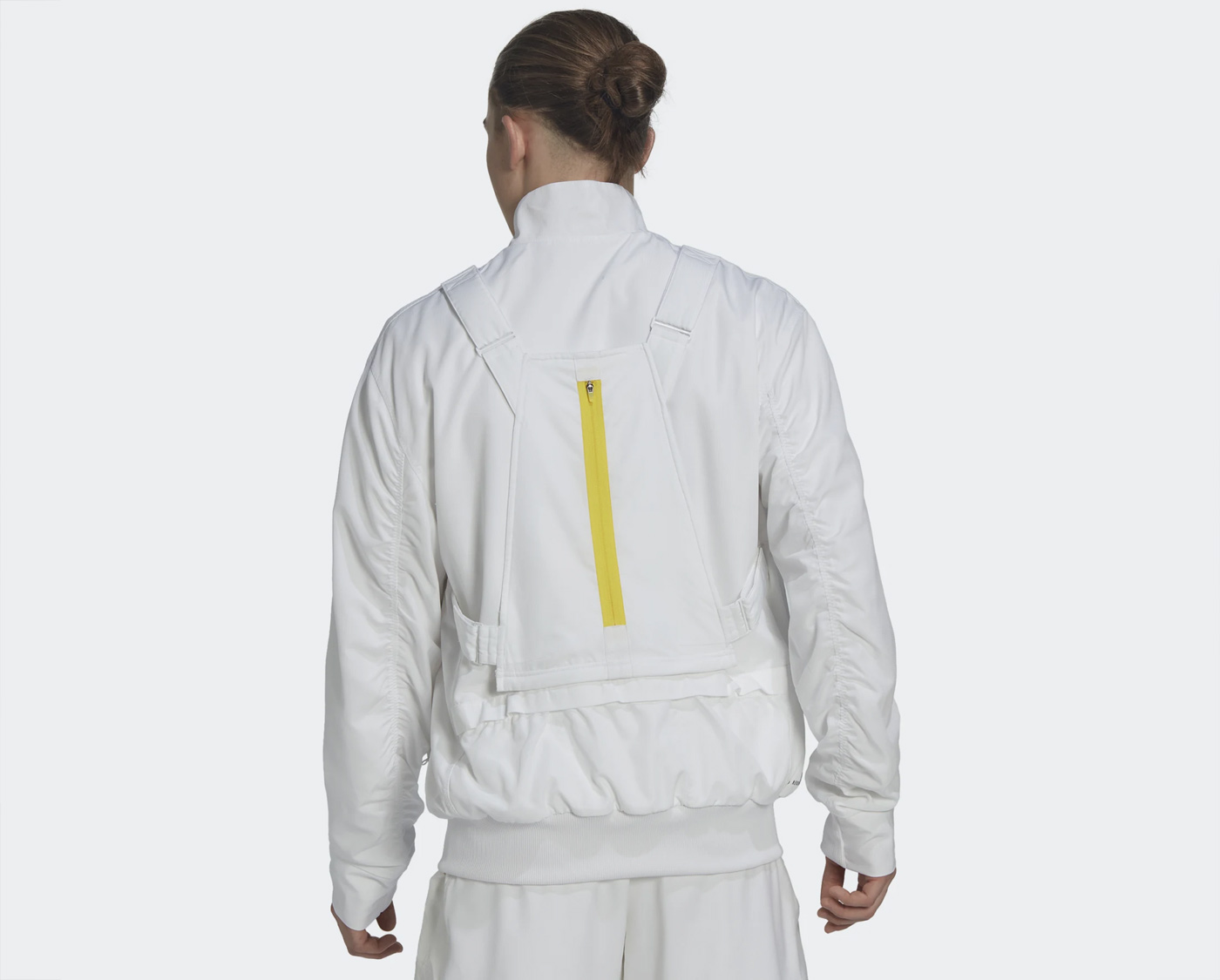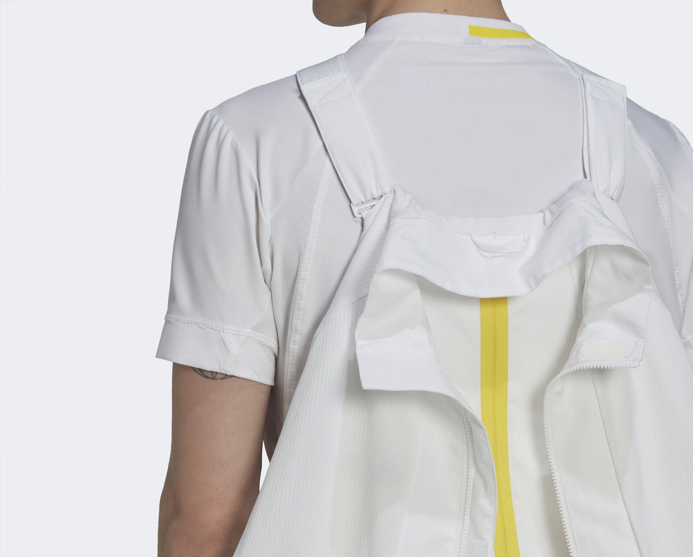 Sticking to the tradition of the world’s oldest tennis tournament, Adidas athletes will compete on Wimbledon’s storied grass courts in a wardrobe of crisp tennis whites. Combining sustainability and classic on court style, all garments in the Adidas x Parley FW22 Tennis Collection are made in part with plastic intercepted on remote islands, beaches, and shorelines – preventing it from polluting the ocean. Decorated with black and yellow accents, the men’s range includes a t-shirt, polo, shorts, woven tee, pants and a jacket with a detachable shoulder bag that carries two racquets. The laser-cut Morse code patterns on the garments were inspired by ocean activists.