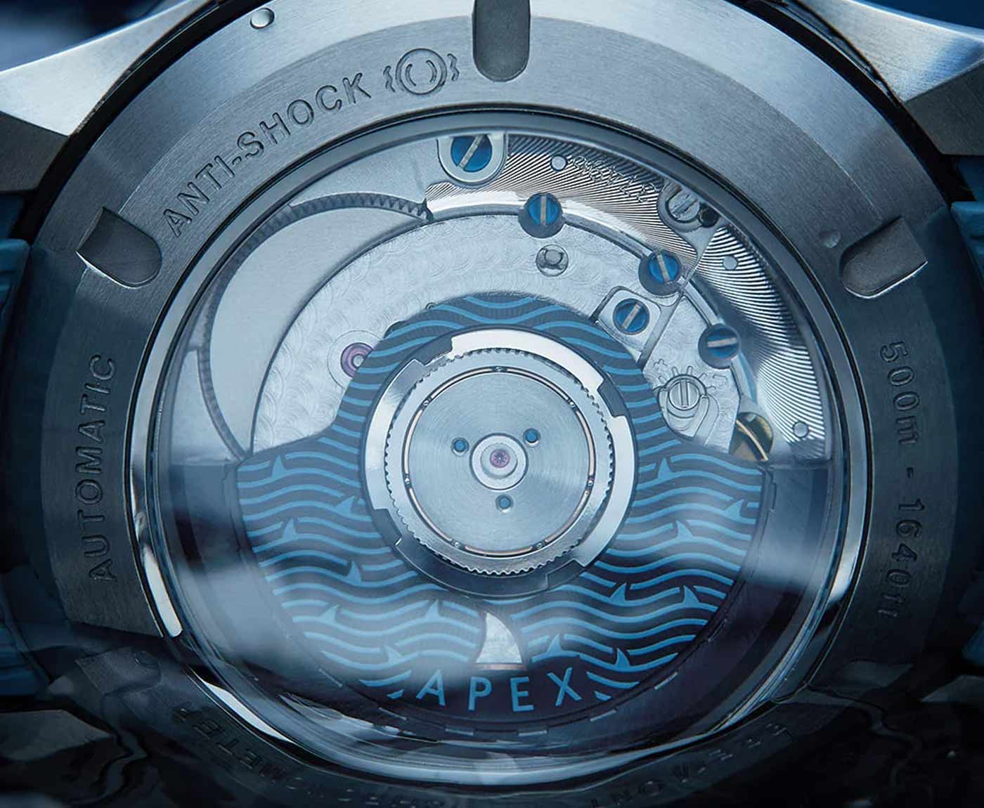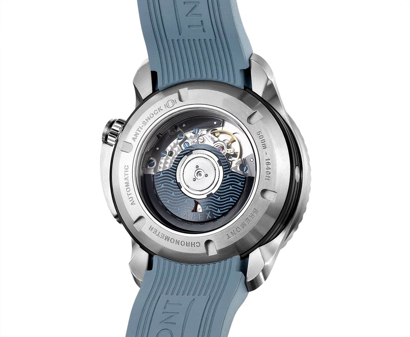 Bremont’s new Waterman Apex is a high-performance mechanical dive watch inspired by the work of Bimini Shark Lab, a Bahamian non-profit studying the biology of sharks and rays and the role they play in the marine ecosystem. Part of Bremont’s professional grade Supermarine collection, the diver incorporates an automatic helium escape valve and crown protector, as well as boasting a 42-hour power reserve with GMT and date functionality. The 43mm steel case has a uni-directional bezel paired with a matte black dial decorated with a shark fin amongst waves etching, a nod to the partnership with the Shark Lab. Despite having an open case back – also decorated with the wave and shark fin motif – the Waterman Apex is water resistant to 500m. Limited to 250 pieces, the watch is available on a blue rubber strap ($5,095.00) or a stainless steel bracelet ($5,595.00).