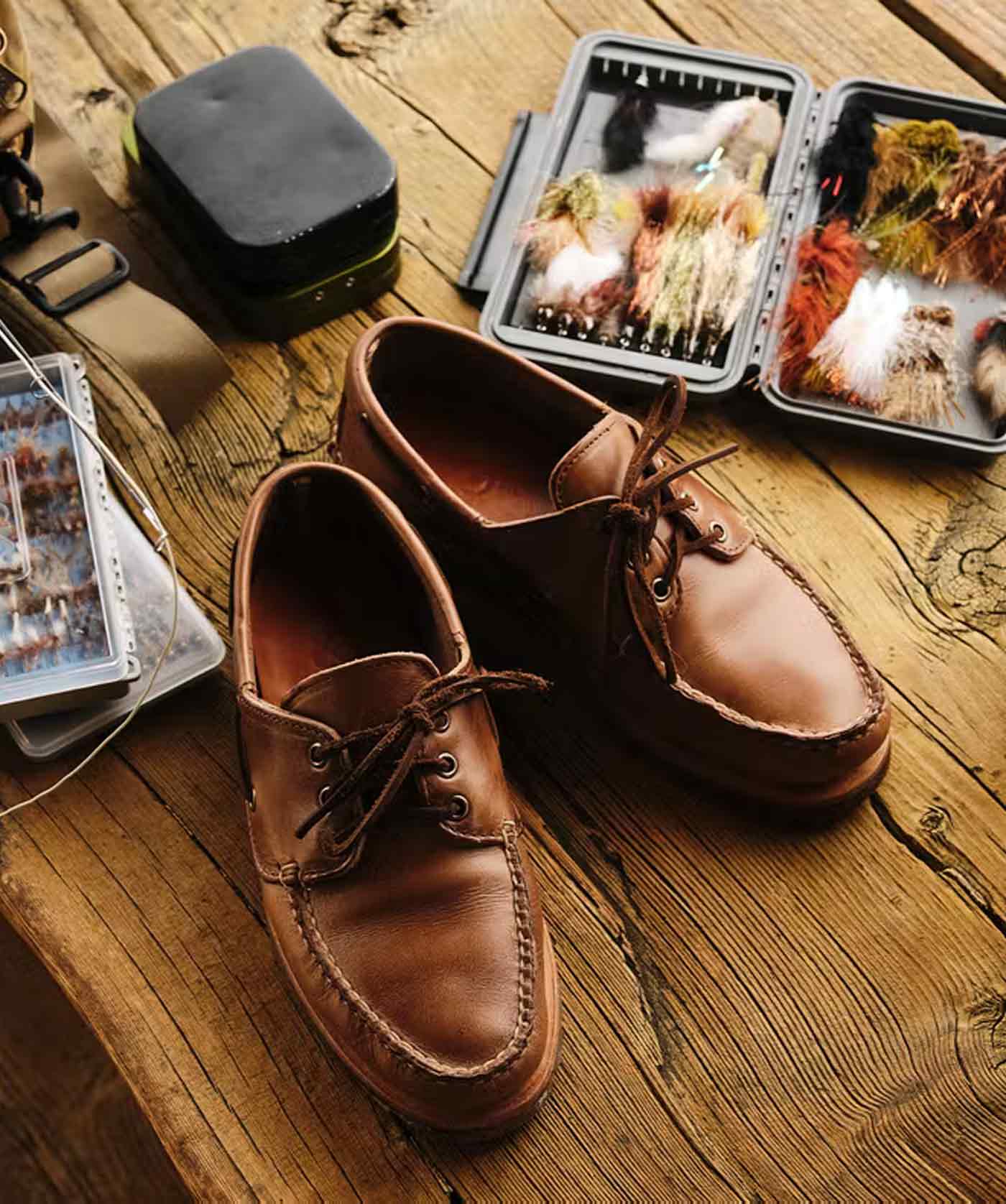 Huckberry and David Coggins created a ‘ruggedly elegant’ moccasin for their second shoe collaboration. An author, tastemaker and outdoorsman, Coggins took inspiration for the design from his travels to Idaho’s Sawtooth Mountains. The limited-edition ‘Sawtooth’ moc is handcrafted in Maine by Rancourt & Co. using Horween’s Natural Chromexcel – an undyed leather that ages beautifully and requires little break-in time. The extra supportive Lactae Hevea outsoles are made in France from 100% natural latex. To ensure the shoes lived up to expectations, Coggins took the first couple pairs out to Ketchum, Idaho last fall for a field test. As expected, the Lactae Hevea soles maintained traction on a variety of surfaces and the Natural Chromexcel leather uppers started developing a honeyed patina.