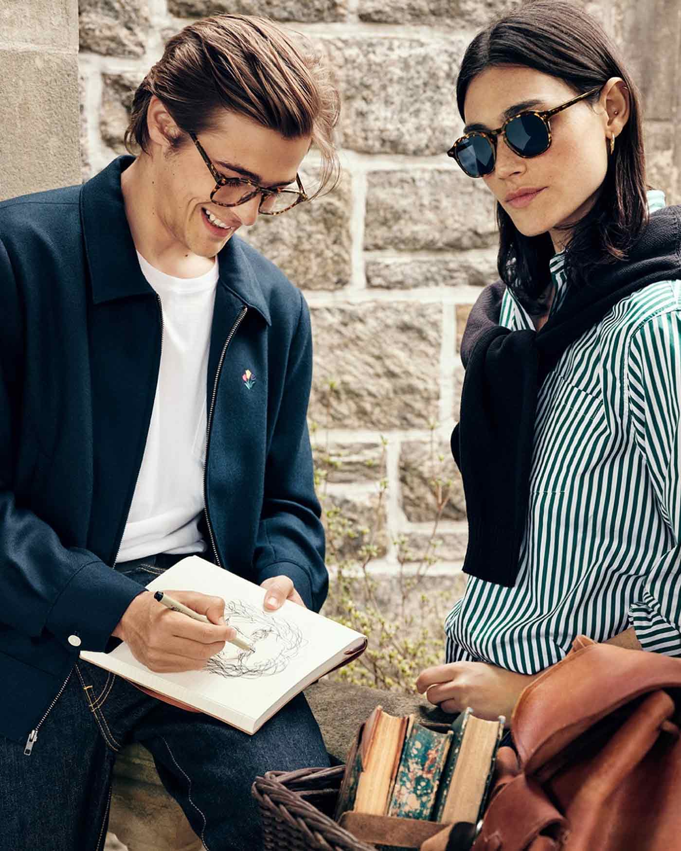 Noah and Warby Parker teamed up to create exclusive new colorways for three of the DTC eyewear brands preppiest frames. All of the limited-edition frames are available as prescription or nonprescription eyeglasses and sunglasses. The standout style in the six-piece collection is the Terrence ($95.00), an angular frame with square lenses and a keyhole bridge in ‘black oak tortoise’ acetate. For something more tradition there’s the Ainsley ($95.00), designed with classic round frames and a keyhole bridge in green acetate. The retro style Shea ($95.00) comes in brown tortoise with a cat-eye shaped lenses and a bowed browline.
