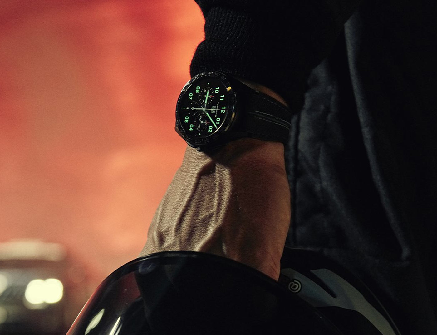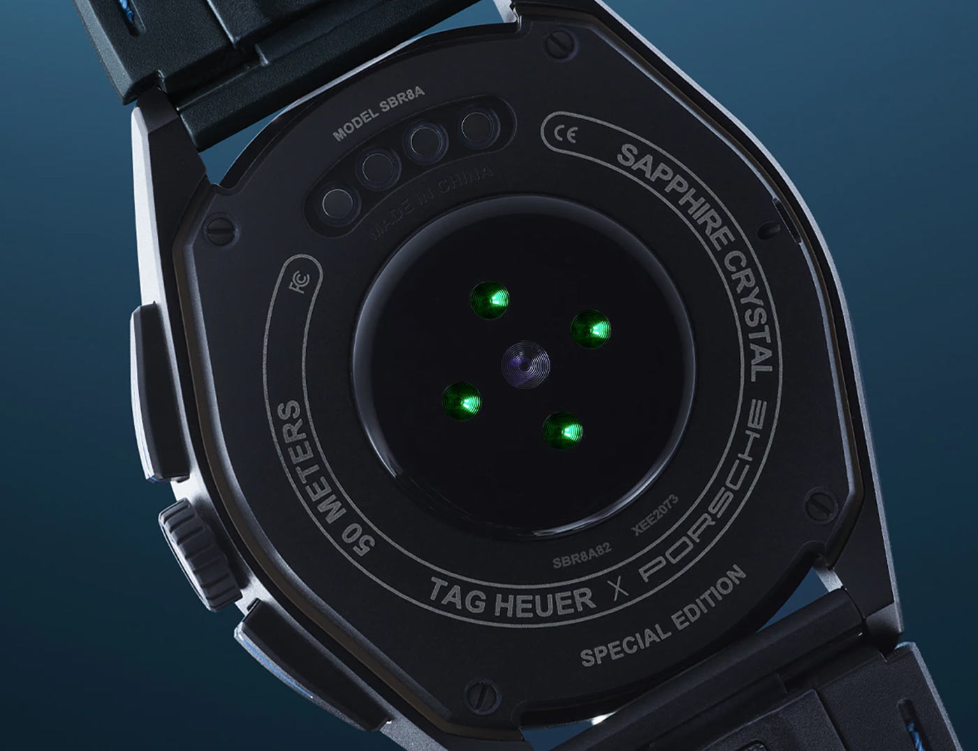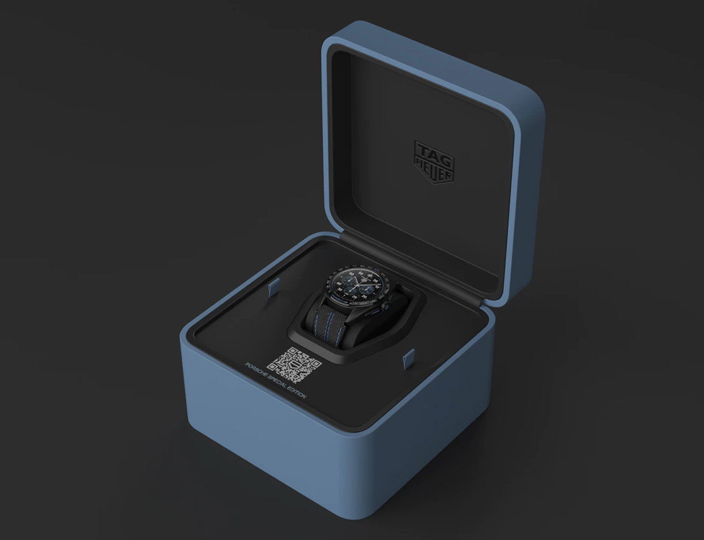 Porsche’s all-electric Taycan collection inspired TAG Heuer’s latest smartwatch. The TAG Heuer Connected Calibre E4 Porsche Edition comes with the new Circuit watch face, an exclusive design only available to owners of the watch. Running a customized version of Google’s Wear OS system, the dial’s ‘frozen blue’ highlights echo the lines of printed circuit boards. This animated display offers information – such as car battery percentage and total mileage – for compatible Porsche models directly on the watch face. The customized Wear OS can also control the cars air conditioning and heating through the My Porsche app. Built from grade 2 titanium with a black DLC coating, the 45mm case sports a black ceramic bezel with blue and grey accents, and a special Porsche engraving on the case-back.
