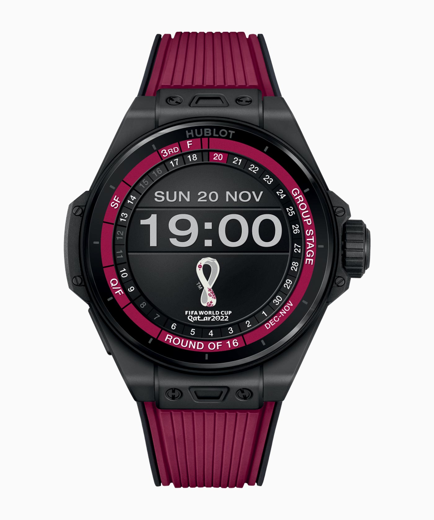 The countdown to the 2022 FIFA World Cup is on, and Hublot is ready with its most advanced Big Bang e to date. Limited to 1,000 pieces, the Gen3 Big Bang e FIFA World Cup Qatar 2022 has an even larger and improved high-definition screen, and the new timeline function – a feature created exclusively for this smartwatch. Before the tournament starts, a dedicated app tailor-made for the watch will be in countdown mode, tracking the days until the opening match on November 20 between Qatar and Ecuador. Then, 15 minutes before each match, the watch will display team line-ups and player profiles. As a game kicks off, the watch will automatically enter match mode and activate timeline, capturing the most important moments. The display will automatically switch into extra time mode, and then into shootout mode as needed, if the match goes beyond normal time. Each penalty is recorded by a football icon with a green or red outline to indicate whether or not the attempt was successful. A final “match period animation” indicates the game is over and displays the final score. At any point during the game, the wearer can activate the replay function by scrolling around the dial using the watch’s crown.