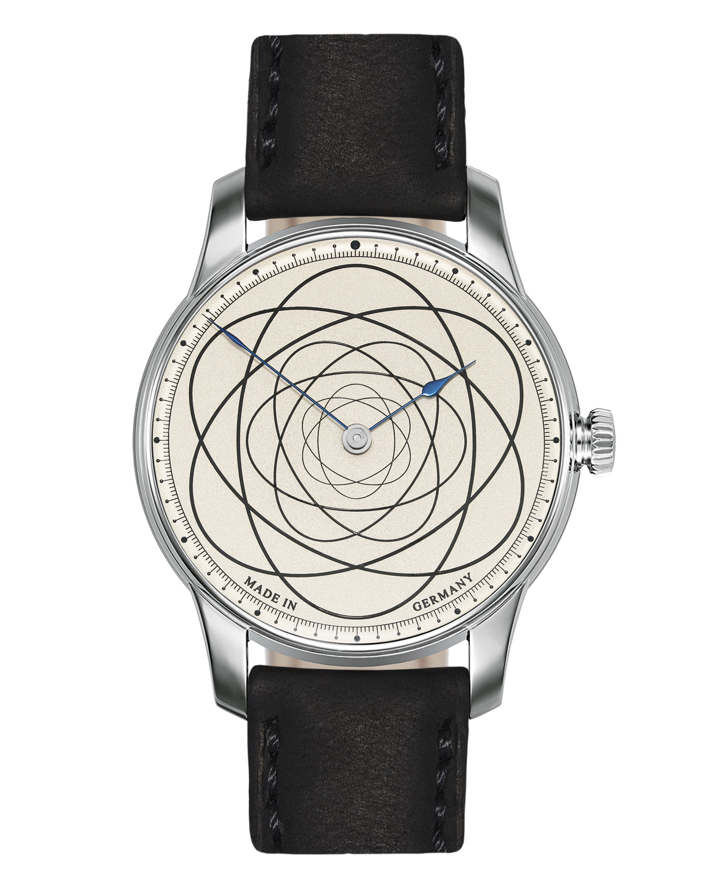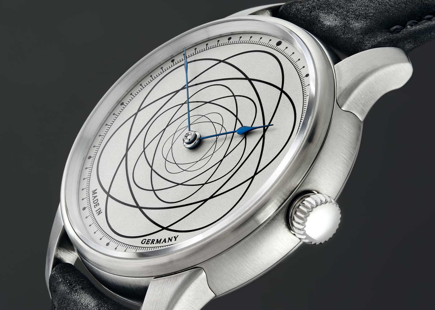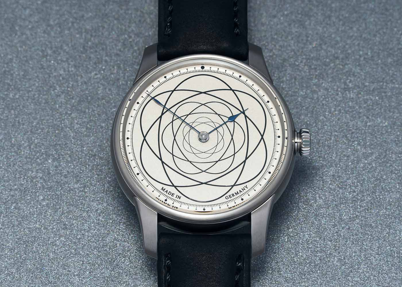 When it comes to luxury watches, there are limited editions and there are limited editions. Moritz Grossmann and photographer Atom Moore created a haute horlogerie showpiece available in a limited edition of only seven pieces. The Atom Moore 37 features a silver dial covered with overlapping lines filled with black lacquer, creating velvety strings that subtly reflect light. The finish, known as silver plating by friction, was executed using a 19th century technique revived by the German watchmaker. Housed in a 37-mm stainless steel case fitted to a black leather strap, the watch is powered by an intricate in-house calibre visible through a glass case back. Known for his acute focus photos of fine watches, Moore has worked with Tudor, Vacheron Constantin, Grand Seiko, HODINKEE and vintage watch retailer Analog:Shift. Moore’s name and trademark inspired the dial design, an atom symbol with superimposed ellipses that represent electrons orbiting the atomic nucleus, similar to planets orbiting the sun. Available exclusively from Cellini Jewelers NYC.