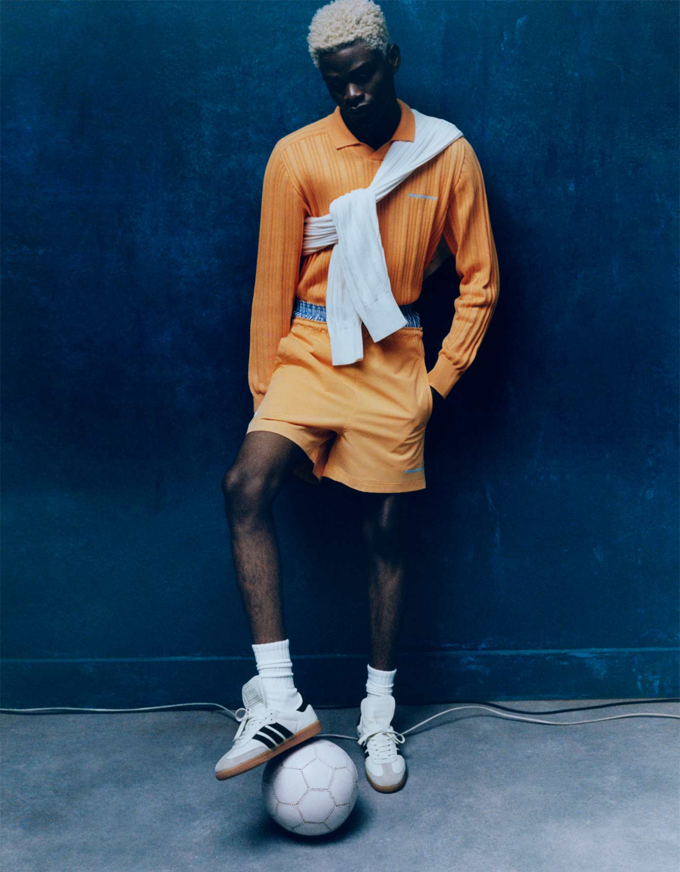 Pharrell Williams offers a fresh take on one of adidas’ oldest sneakers with the AW22 Samba Capsule. Fist produced in 1949 for football players training indoors on hard courts, the original Samba featured an extended tongue and a rubber cupsole with suction cups. Pharrell keeps the rubber cupsole and extended tongue, updated with molded leather, while elevating the silhouette with premium leather and suede uppers. He also added zig-zag stitching to the three stripes as a nod to the original. The subtle Cloud White ($120.00) and Core Black ($120.00) colorways keep the focus on the retro design. The capsule’s apparel selection also leans into the Samba’s football heritage with both a short and a long sleeve knit jersey, shell jacket and matching pant, and woven shorts, all embellished with nostalgic puff print details.