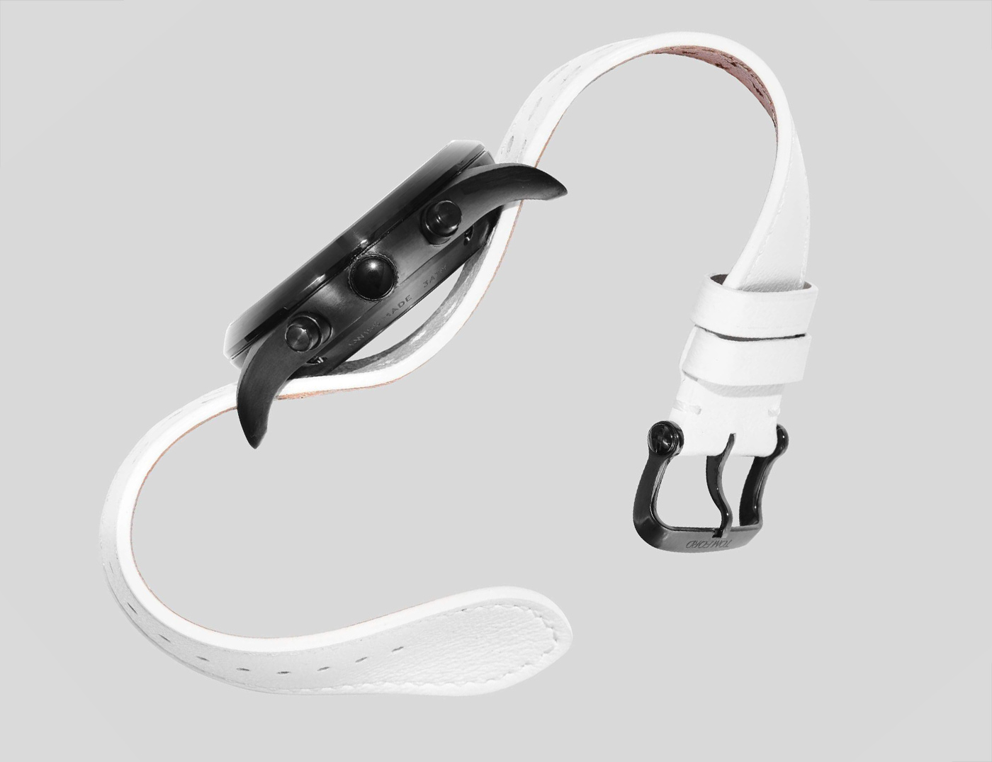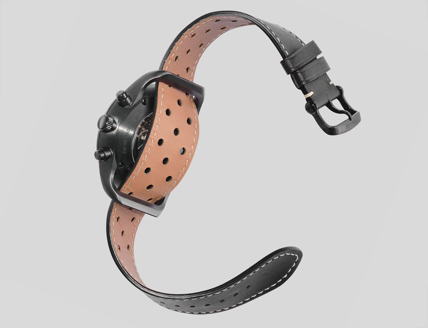 Tom Ford is expanding his luxury watch collection with a new titanium chronograph. The Swiss-made N.002 Limited Edition Chronograph features a round, black DLC coated, 43.5-mm titanium case fitted to a perforated leather racing strap with a DLC coated titanium buckle. Glossy white numerals, markers and Super-LumiNova coated hands pop against the matte black dial. Limited to 150 pieces, each watch is numbered and ‘signed’ on the exhibition case-back.