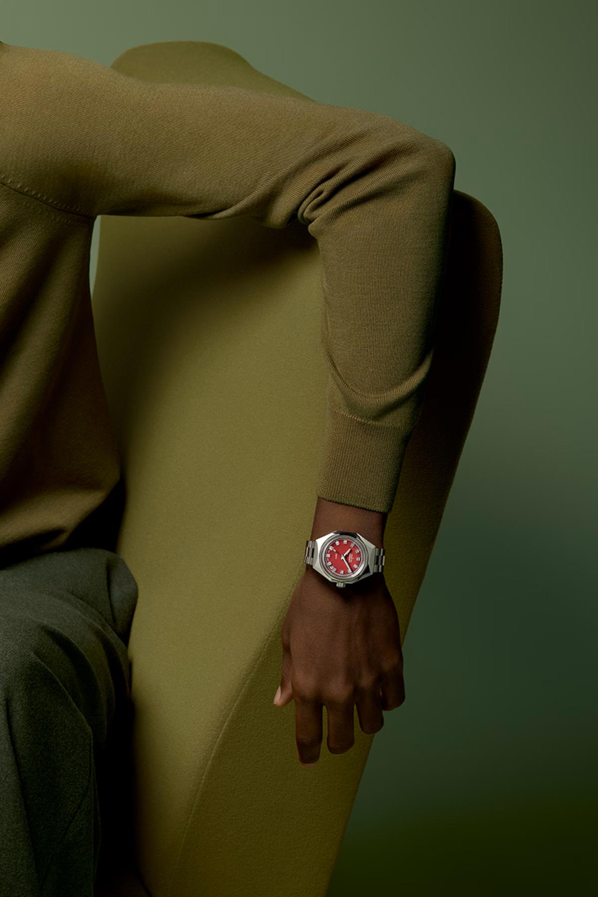 Zenith’s Defy Revival A3691 is a faithful reproduction of early Defy models from the late 1960s and early ‘70s. Using the original production plans as a starting point, the new A3691 brings back design elements that continue to inspire the Defy collection. This includes an octagonal case topped by a fourteen-sided bezel, rhodium-plated square hour markers with horizontal grooves, and a deep red dial with a gradient finish that darkens towards the edges. The rhodium-plated hour, minute and second hands are all coated with SuperLuminova SLN C1 for excellent visibility in low light conditions. The in-house ELITE 670 automatic movement can be seen through the sapphire crystal case back. As a finishing touch, the 37-mm steel case is fitted to a distinctive steel ladder bracelet crafted in Switzerland by Gay Frères.