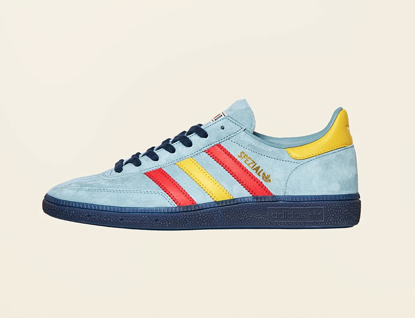 END. applied the movements principles to three classic adidas sneaker silhouettes, the Bermuda, Handball Spezial and ZX420. The END. x adidas ‘Bauhaus’ Bermuda ($105.00) features Team Yellow suede uppers with red and blue stripes, reflecting Bauhaus’ affinity for geometric shapes and layered forms. The Handball Spezial ($105.00) combines gold foil branding with plush Hazy Blue suede uppers accented with navy, red and yellow. Completing the pack is a muted twist on the ZX420 ($150.00) – a retro mesh runner overlaid with creamy suede and leather.