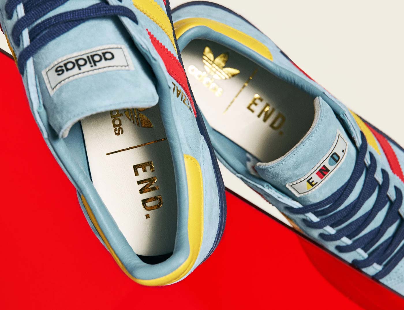 For their latest collaboration with adidas, British retailer END. produced a trio of sneakers inspired by the Bauhaus school of design. Staatliches Bauhaus was founded in 1919 by German architect Walter Gropius. Students were encouraged to create aesthetically pleasing utilitarian objects free of elaborate decoration, under the notion that form follows function. Bauhaus’ use of bold typography, block colors and strong architectural forms continues to influence contemporary design.