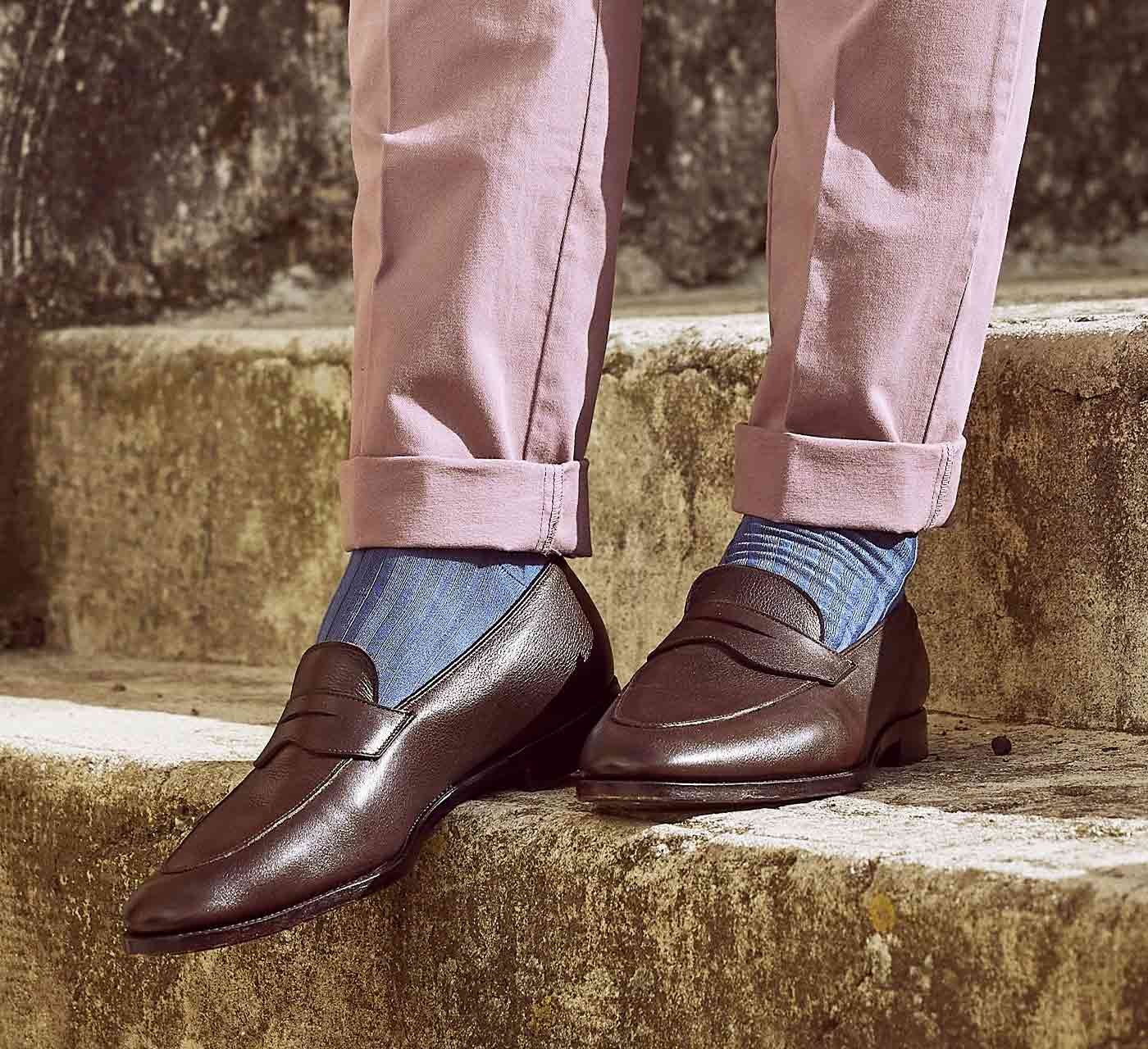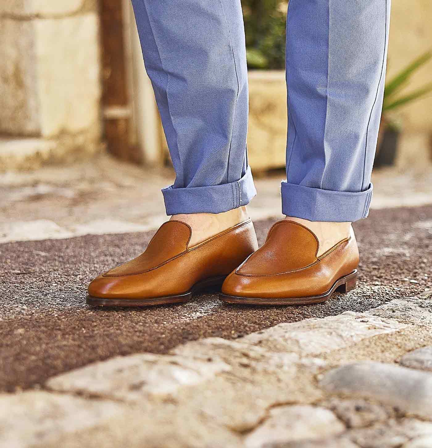 Crockett & Jones’s Spring Summer 2023 collection was inspired by the Côte d’Azur. The lineup of lightweight shoes includes three new styles, the Antibes, Cannes and Nice, produced on a new last (Last 393) especially crafted for this trio of summer-ready loafers. The 393 has a refined toe shape particularly suited to a more casual loafer style. It also features a softer, slightly shallower toe box. The collection also features two new color options for C&J’s popular Harvard 2 penny loafer and a selection of styles produced with a new ‘milled’ calf leather. Milling gives leather a soft, glove-like texture. Milled calf is both durable and exceptionally comfortable in wear, with a relaxed appearance perfect for a smart/casual summer looks.
