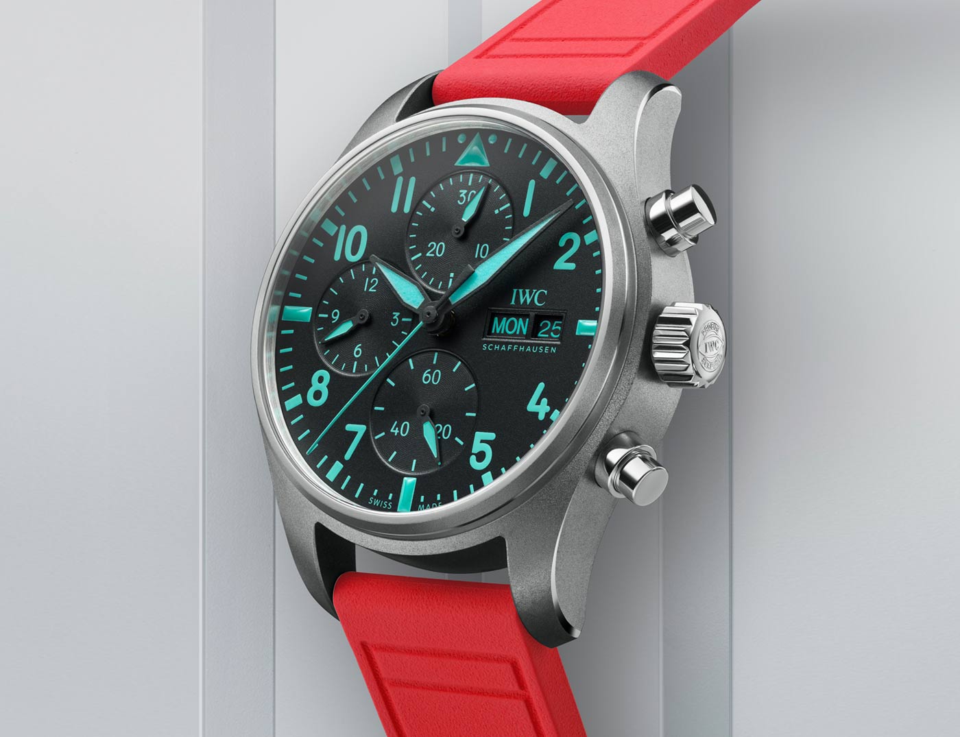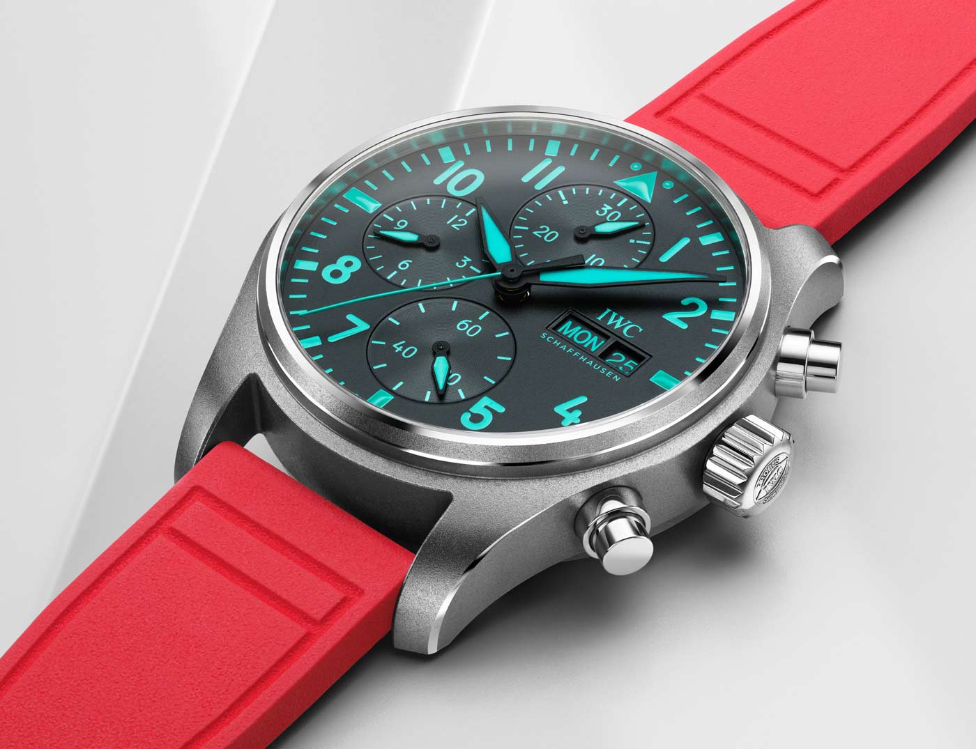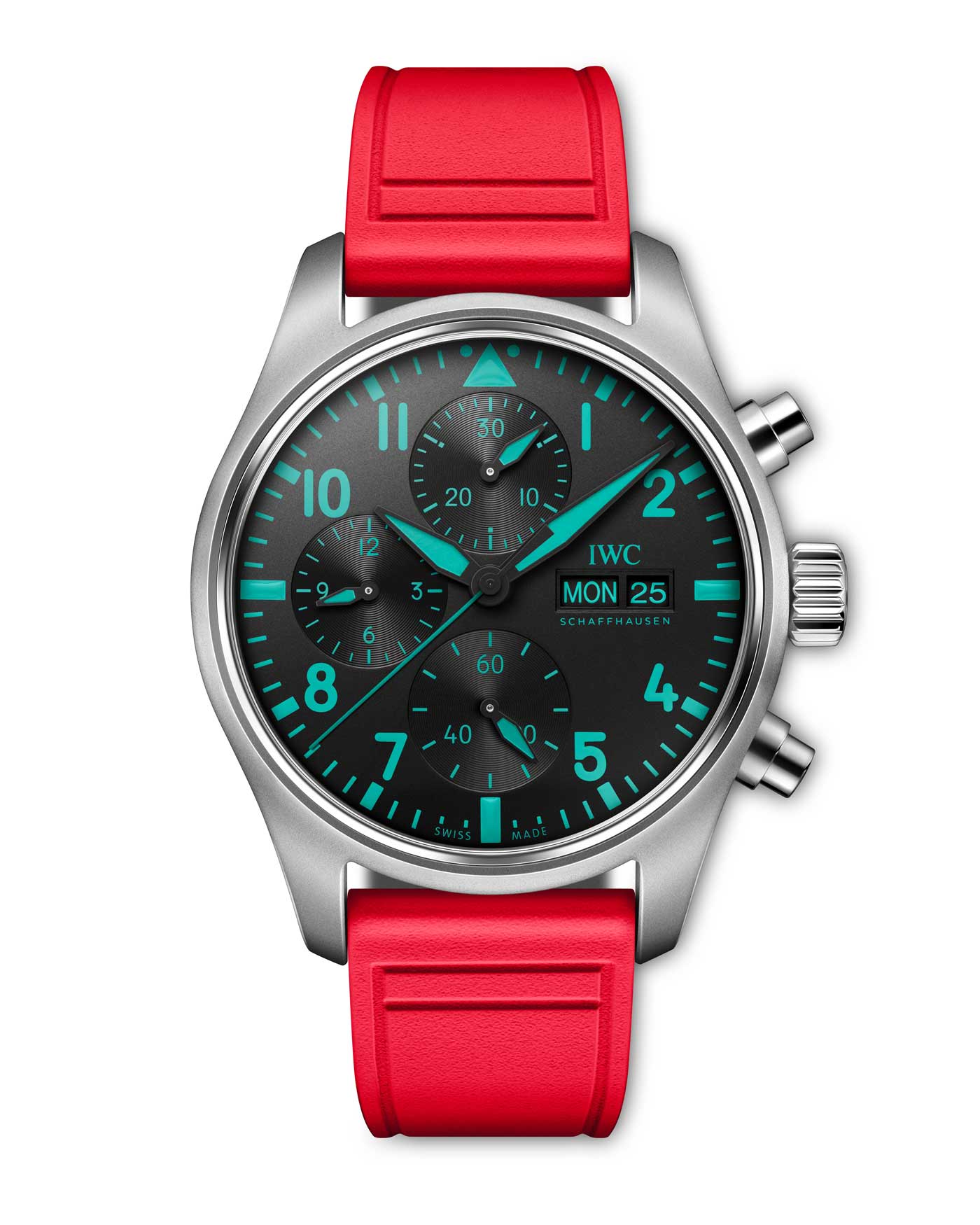 Just in time for the second Miami Grand Prix this weekend, IWC unveils the latest Pilot’s Watch Chronograph 41 Mercedes-AMG PETRONAS Formula One Team. Crafted from grade 5 titanium, the 41-mm chronograph pays tribute to the host city with a ‘Miami Pink’ rubber strap inspired by the vibrant colors of Ocean Drive. IWC became the official engineering partner of the Mercedes-AMG Petronas Formula One Team in 2013. Team members will wear the Miami Pink model during the F1 race at the Miami International Autodrome, where the gloves and shoes of team drivers Lewis Hamilton and George Russell will sport matching pink details.