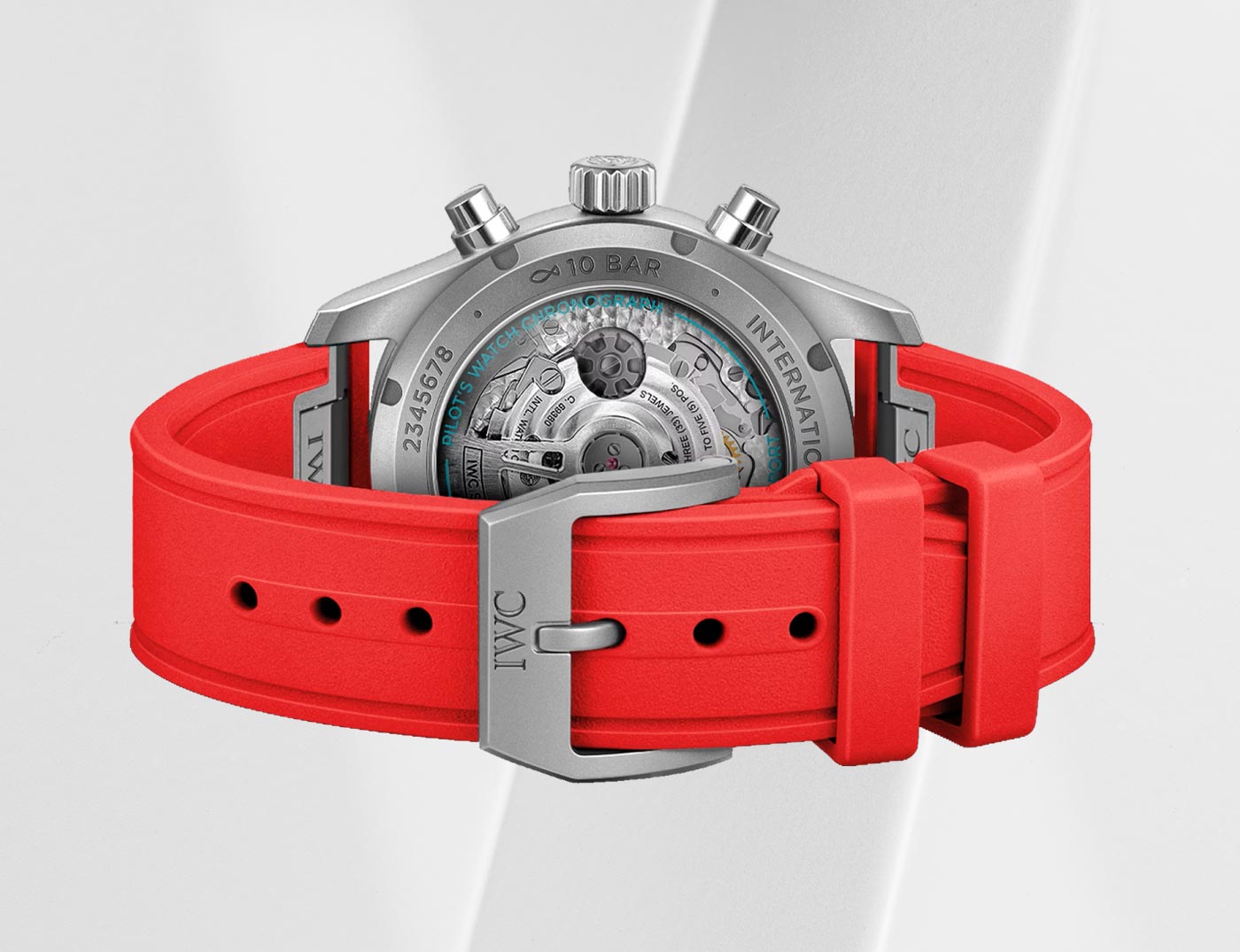 The previous Pilot’s Watch Chronograph 41 Mercedes-AMG PETRONAS Formula One Team on a green rubber strap (Ref. IW388108) was the first official team watch IWC produced for its partner. Like the original, the Miami Pink version (Ref. IW388114), features a black dial with luminescent hands, numerals and markers in the team’s signature PETRONAS green. IWC’s 69385 calibre movement powers the watch. The chronograph movement’s column-wheel design comprises 242 parts and can be viewed through the sapphire crystal case back. Its bi-directional pawl winding system builds up a power reserve of 46 hours in the mainspring. The Miami Pink model ($8,350.00) comes in a bundle with the original green strap and can only be purchased on iwc.com and in IWC’s Miami boutique for a limited time.