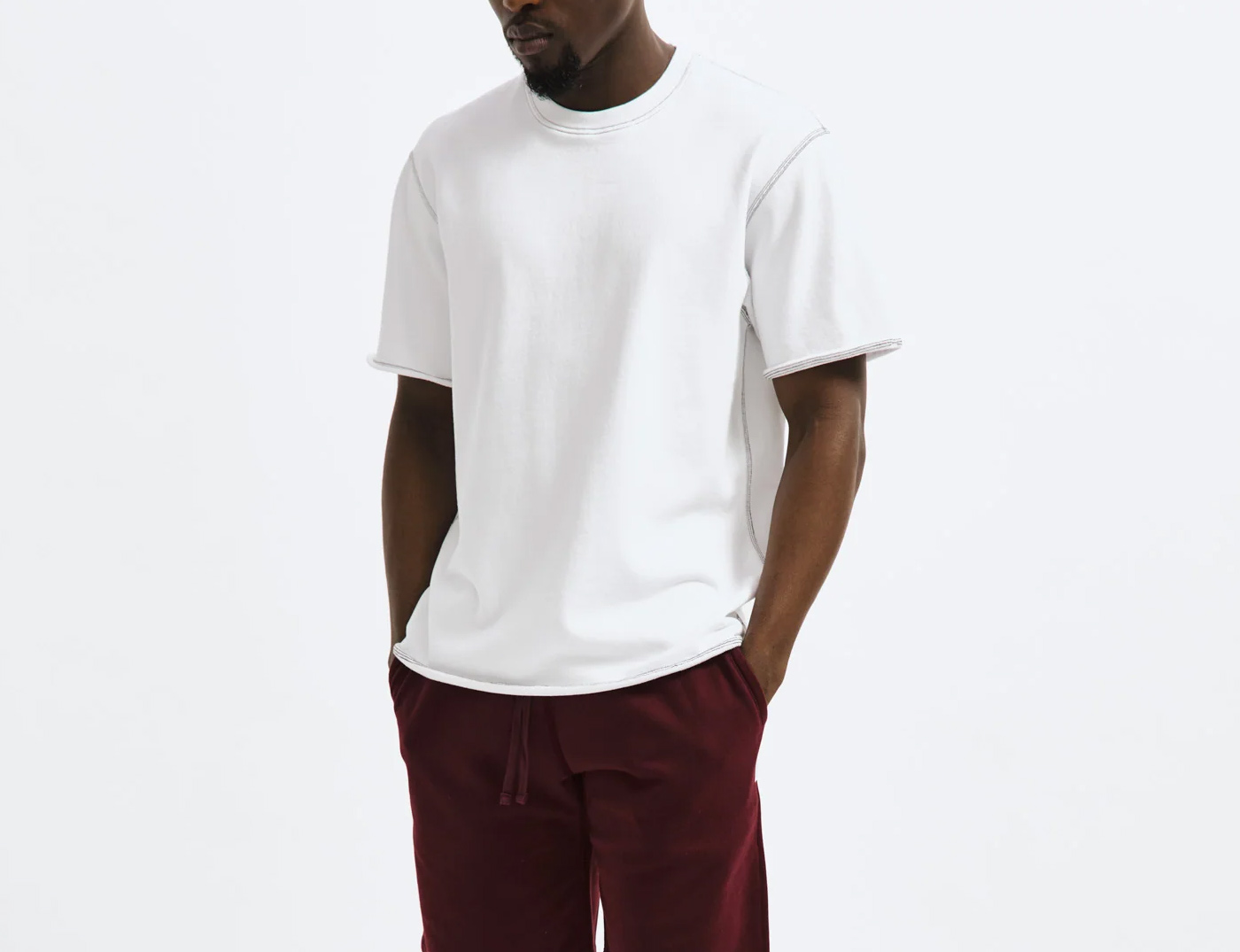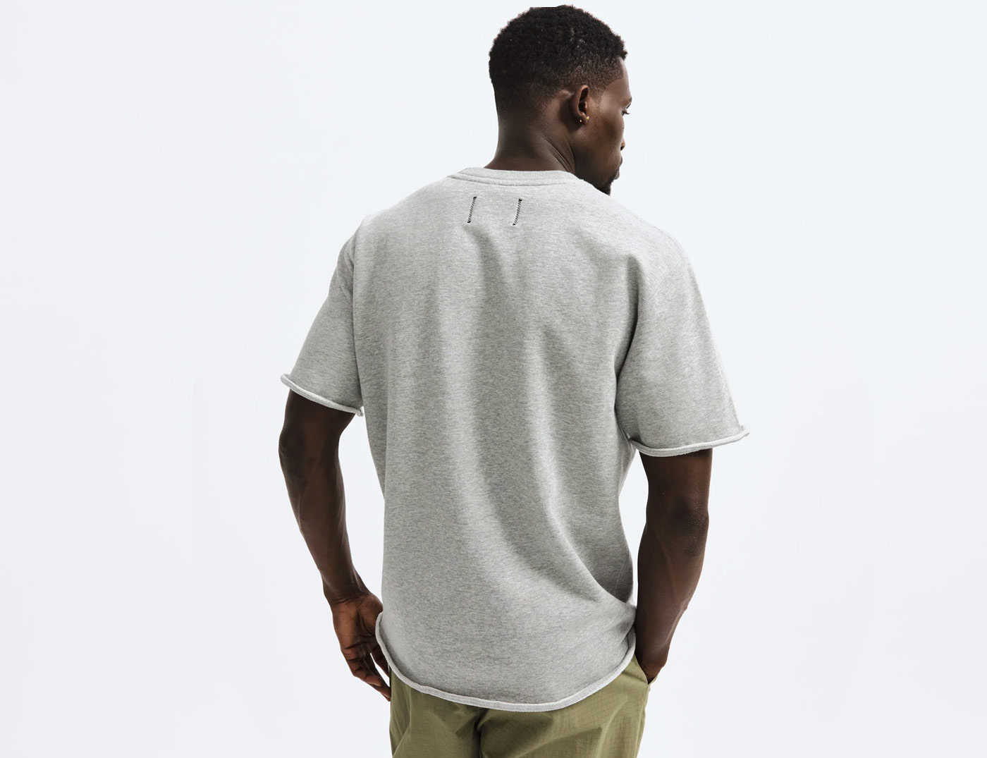 Reigning Champ’s new ‘Cut-Off Pack’ is a throwback to DIY athletic style. Available in three colors, the classic cut t-shirt and 5” short are made from lightweight French terry ideal for mild weather, cool evenings or year-round layering. The t-shirt ($115.00) has a 1” rib collar and set-in sleeves, while the shorts ($110.00) are finished with jersey-lined front pockets and a rear patch pocket. All the raw-edges are reinforced with flatlock stitching. The fit is cropped, boxy and super comfy for breathability and ease of movement, in and out of the gym.
