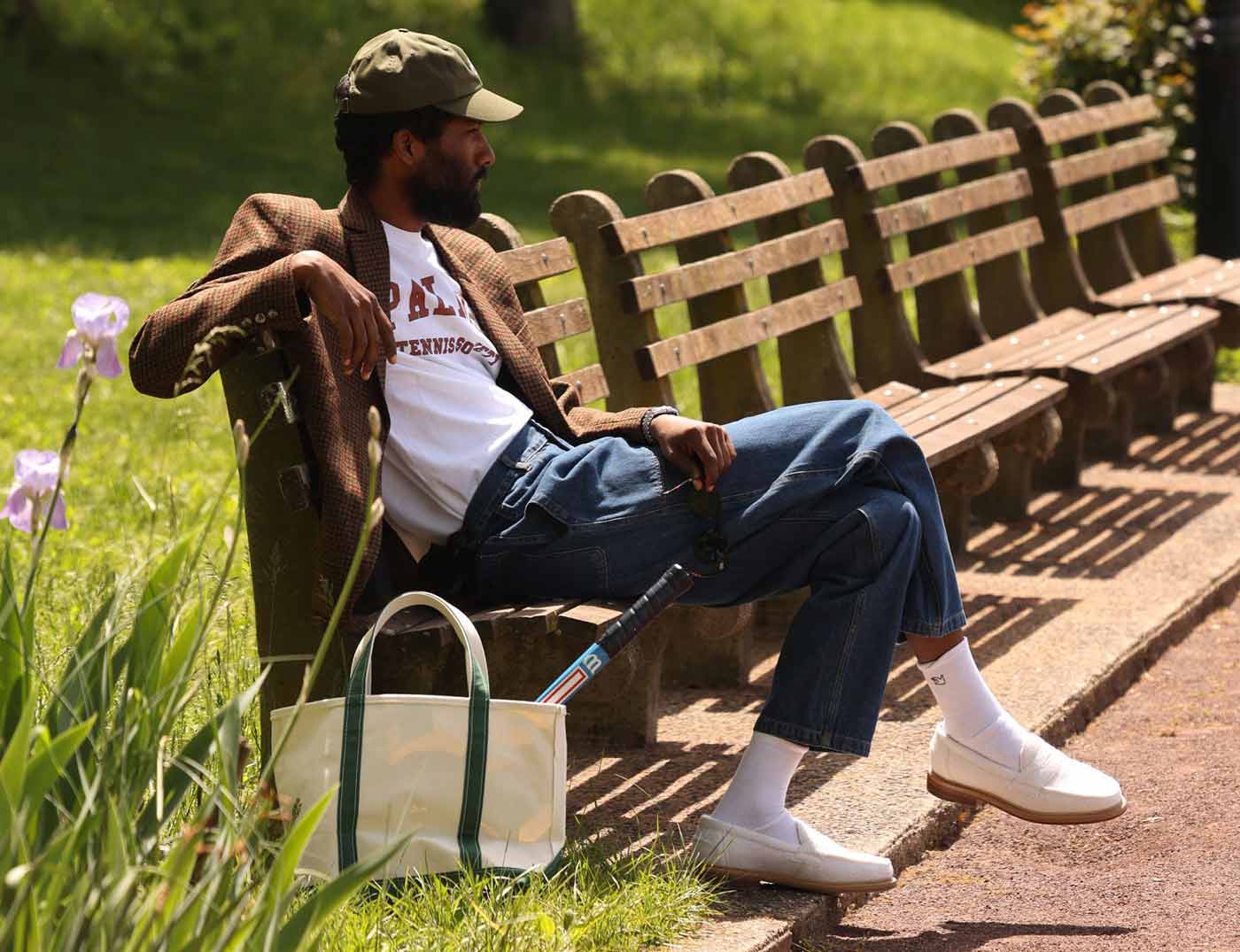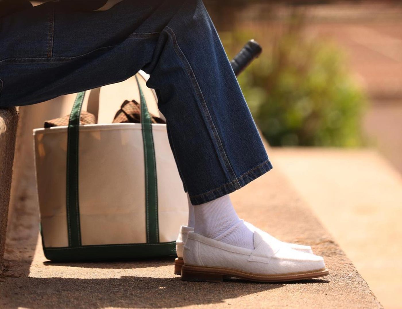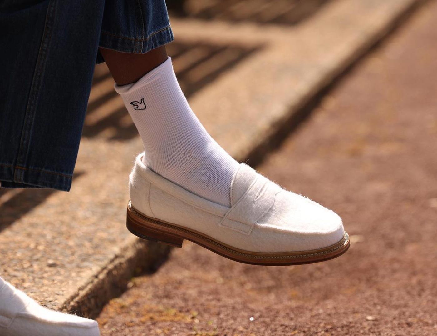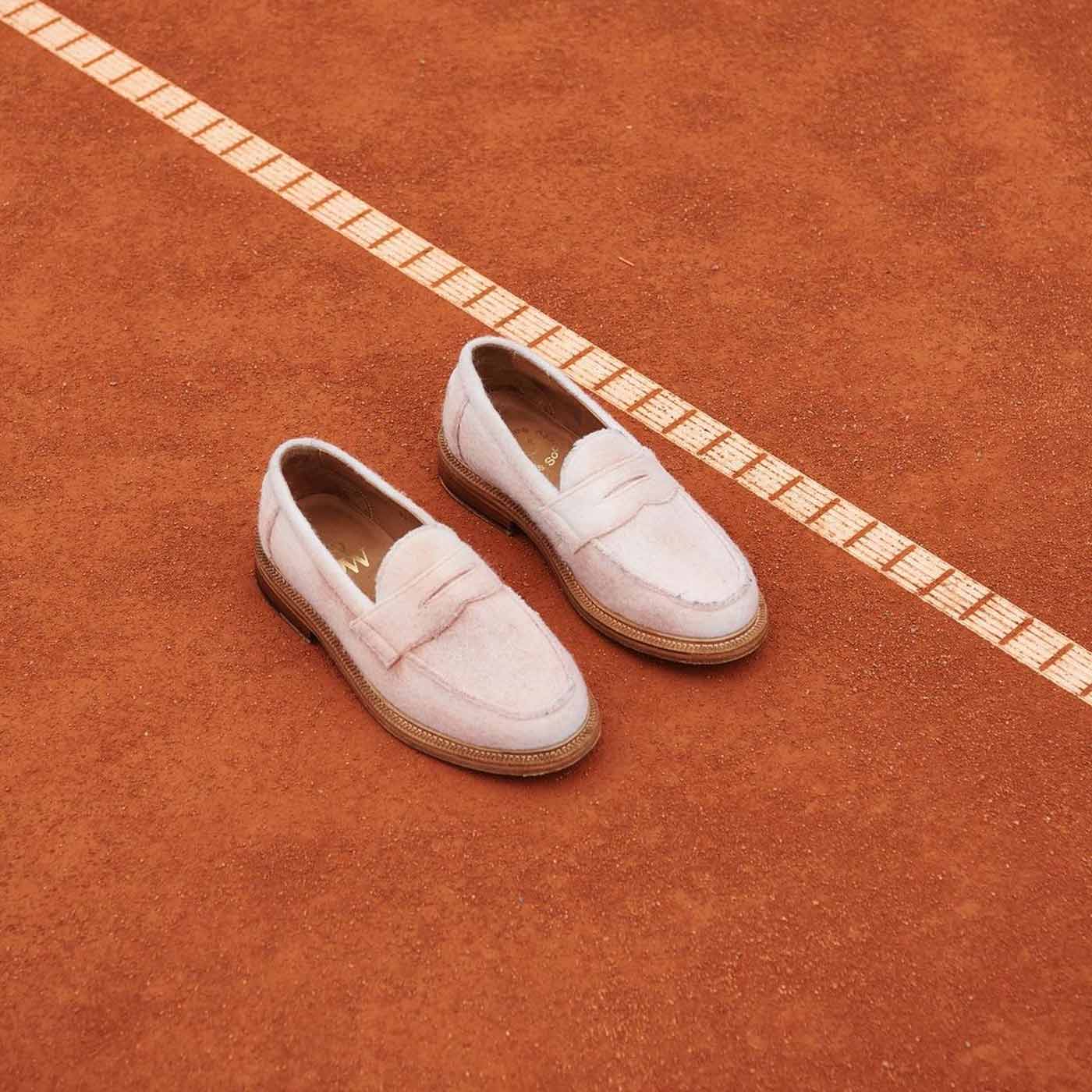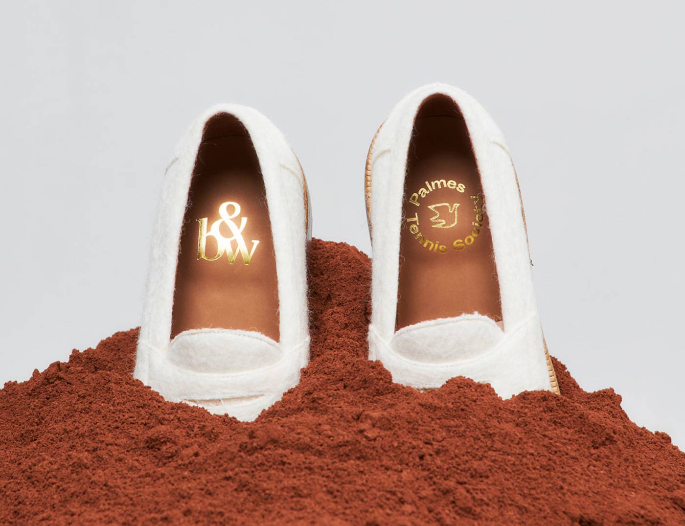 When the modern game of tennis began to take shape in the late 1800s, players used black or white balls covered in melton. It wasn’t until 1972 that tennis balls took on their bright neon hue, largely because optic yellow balls were easier to see on color television. Now, with the European clay court season in full swing, Blackstock & Weber is teaming up with Palmes for an exclusive version of their Ellis penny loafer crafted from white felt. Copenhagen-based Palmes designs contemporary menswear inspired by classic tennis apparel. Echoing the texture of the melton covered balls, the Palmes Tennis Ball Loafer features an upper made with felt sourced from a family-owned tennis ball factory in southern England, sitting on a Goodyear welted double leather sole. Each pair is made in Portugal and co-branded with gold embossing. The shoe box includes a bag of red clay. Buyers can emulate the look of old-school clay court game balls by rubbing the clay into the white felt uppers.