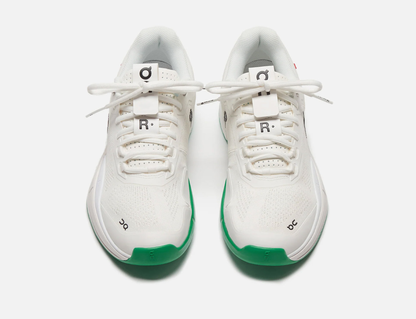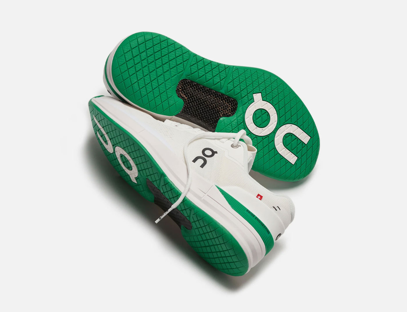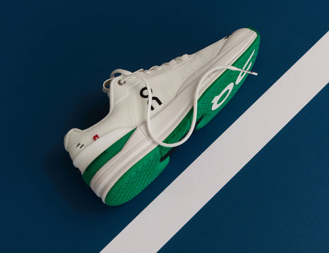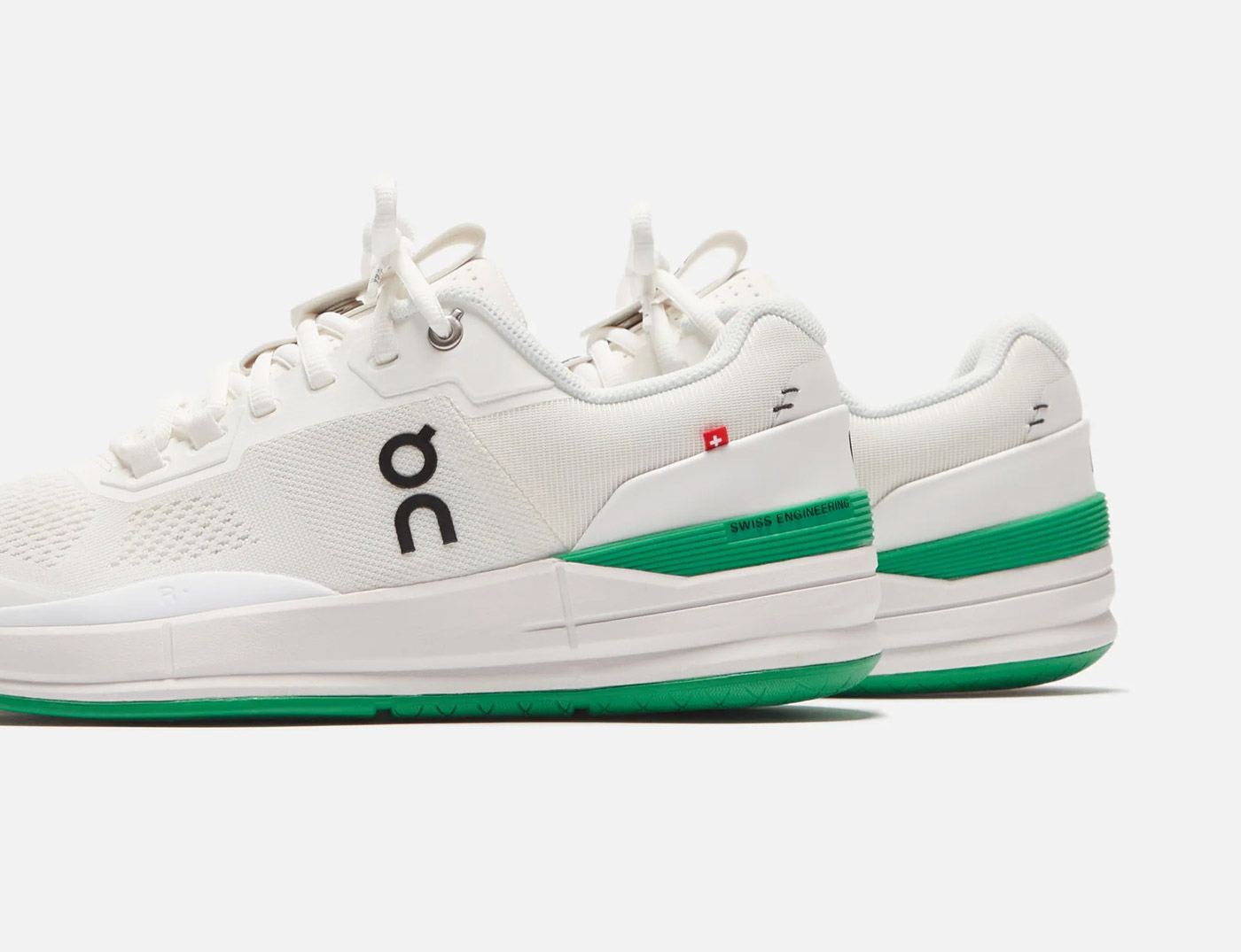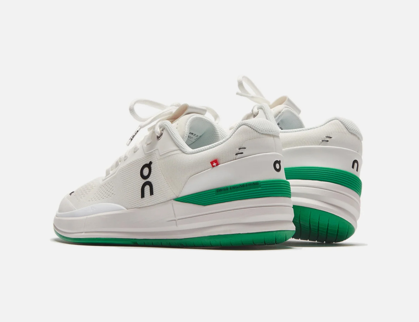 KITH is the only retail outlet stocking The Roger Pro in the new White/Mint colorway. The Roger Pro was Zurich-based On’s first tennis shoe, designed with and for Swiss tennis champ Roger Federer. This limited edition version features a breathable white mesh upper woven from recycled polyester set on a mint green rubber sole stamped with a varied grip patter that limits squeaking on hard courts. Green TPU heel counters – with Swiss Engineering printed on the side – match the soles. To ensure stability on and off the court, On incorporated heel and sidestep support, a high-density foam midsole and a carbon fiber arch support. The shoes are finished with branding on the side panel, and stitch details and a small Swiss flag on the heel.