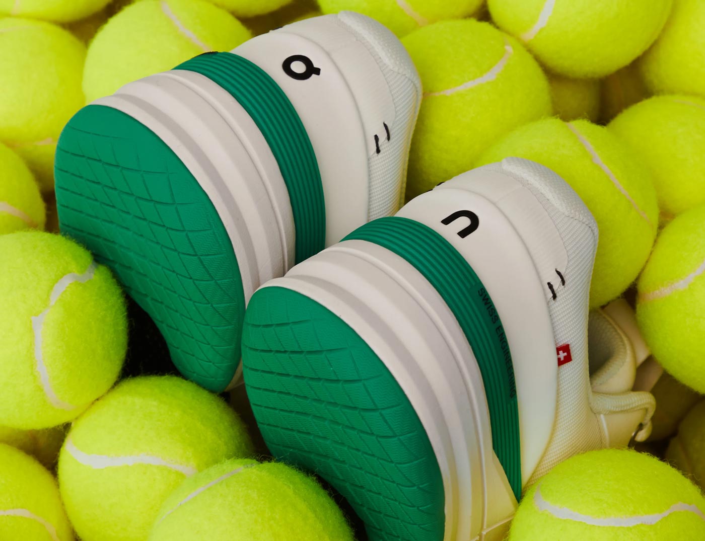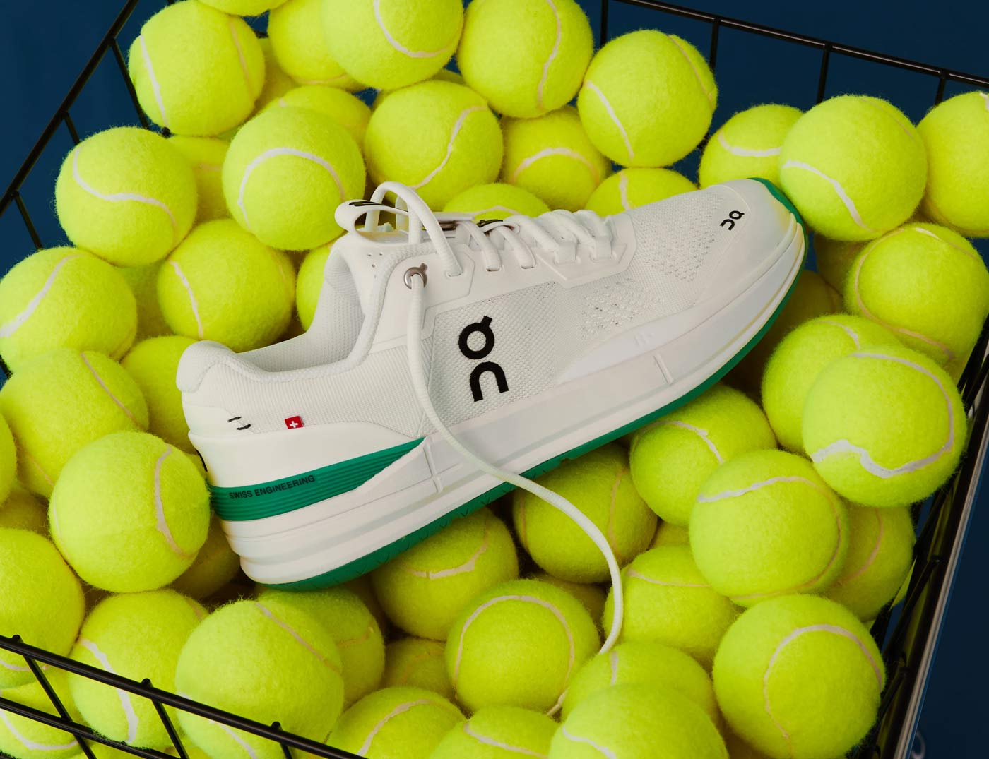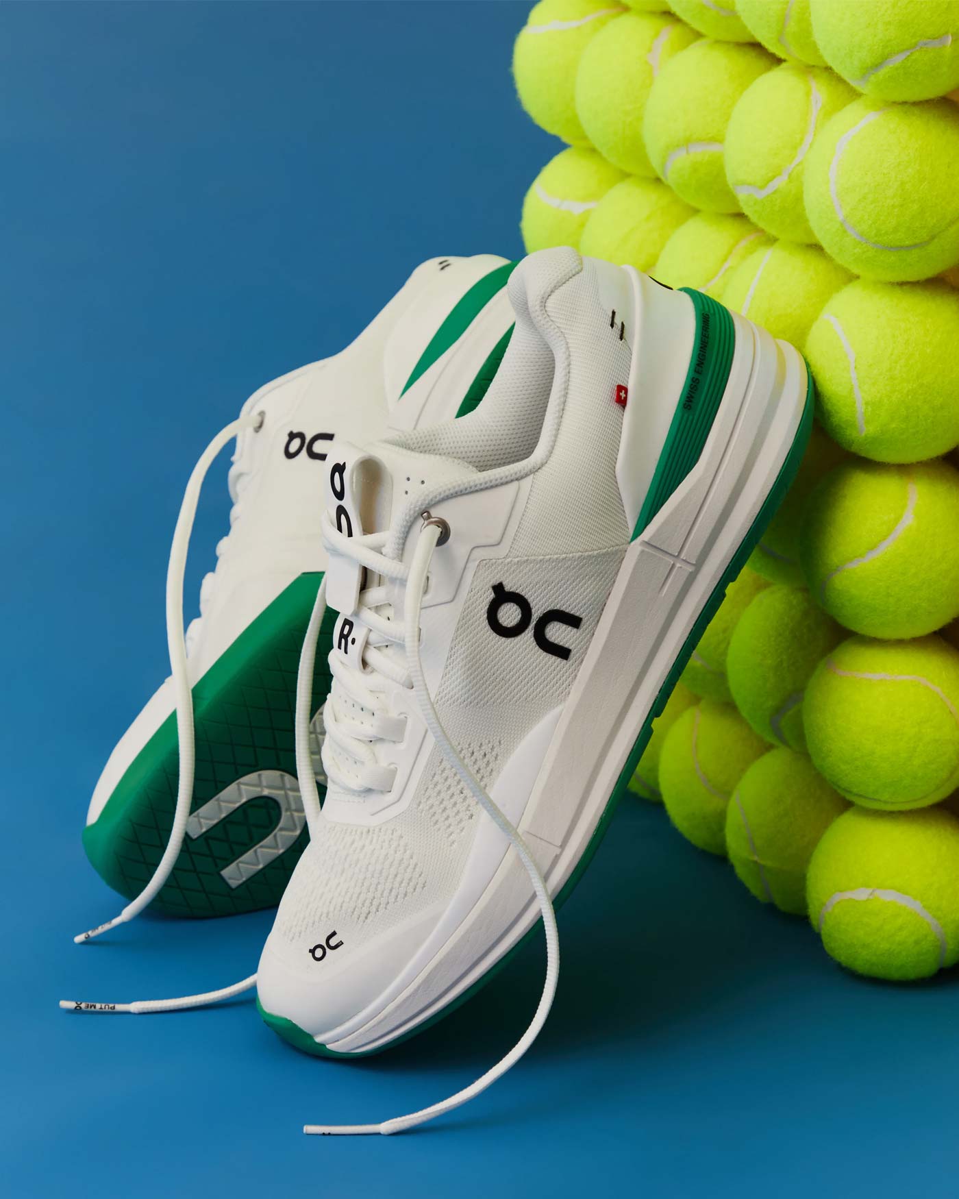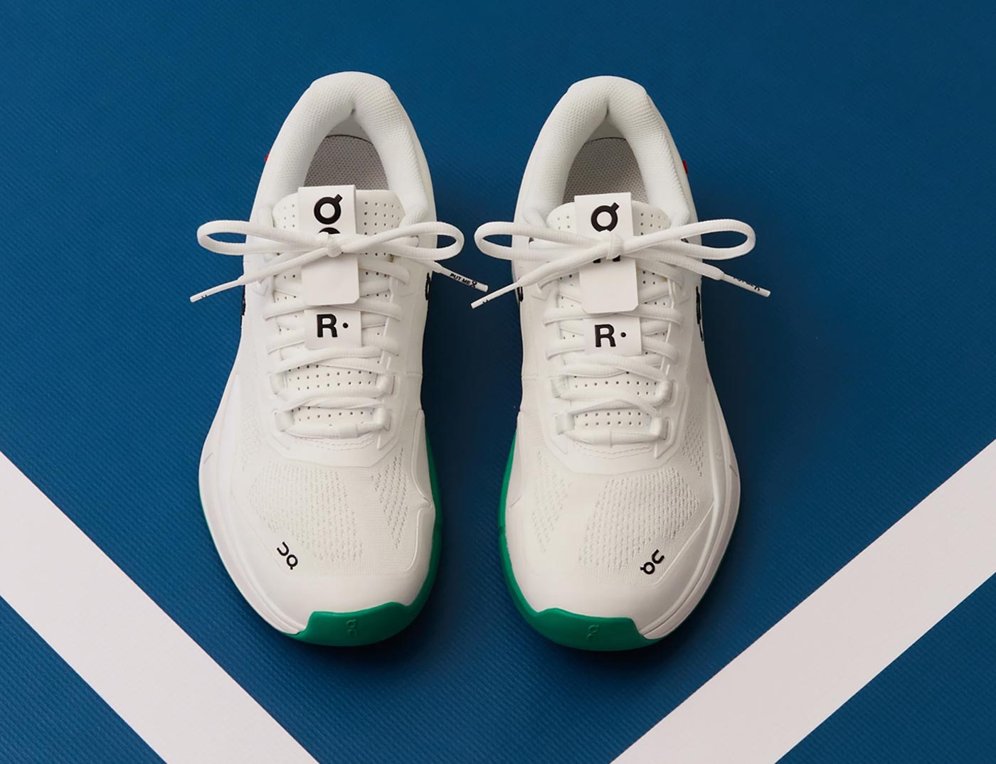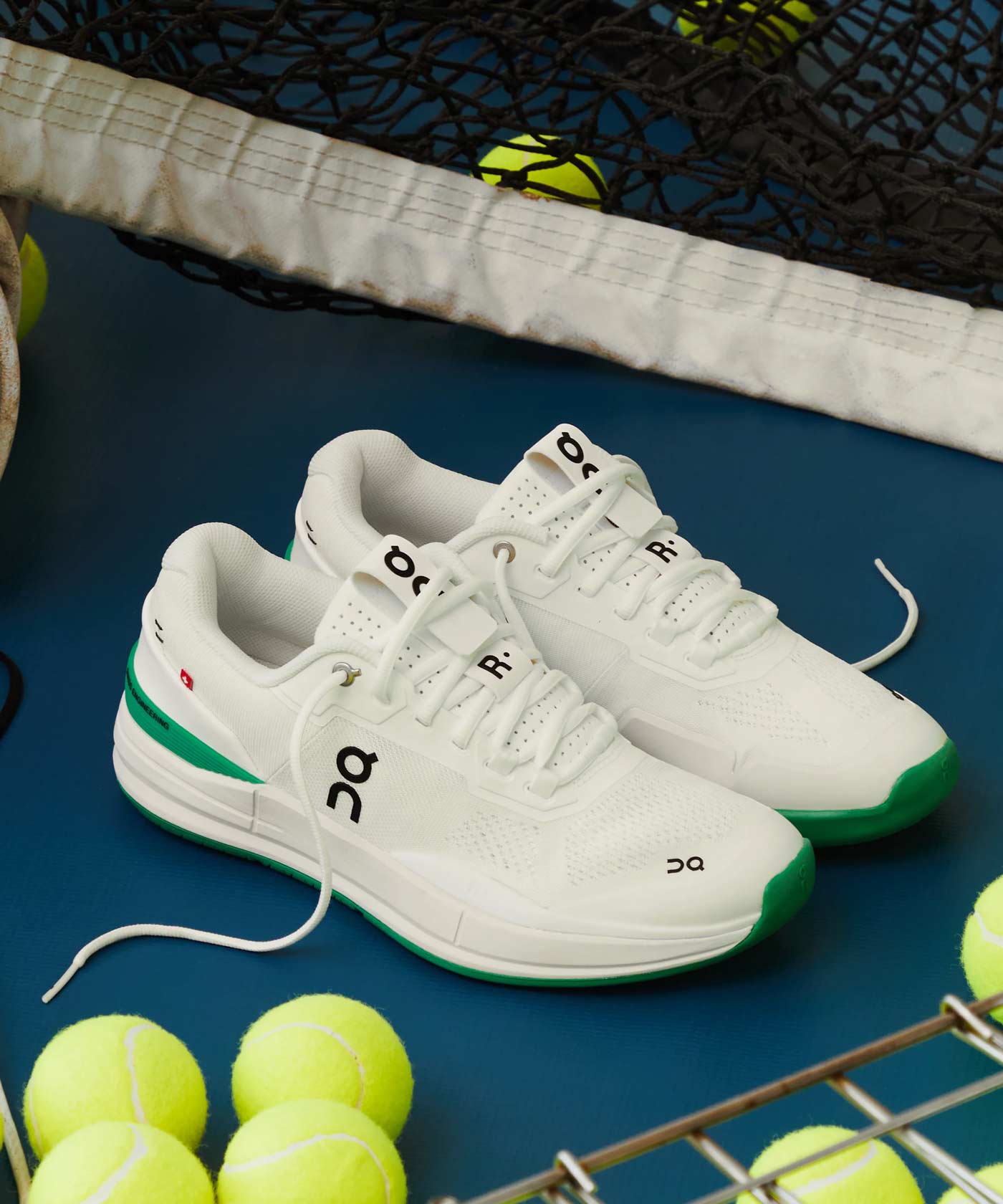 KITH is the only retail outlet stocking The Roger Pro in the new White/Mint colorway. The Roger Pro was Zurich-based On’s first tennis shoe, designed with and for Swiss tennis champ Roger Federer. This limited edition version features a breathable white mesh upper woven from recycled polyester set on a mint green rubber sole stamped with a varied grip patter that limits squeaking on hard courts. Green TPU heel counters – with Swiss Engineering printed on the side – match the soles. To ensure stability on and off the court, On incorporated heel and sidestep support, a high-density foam midsole and a carbon fiber arch support. The shoes are finished with branding on the side panel, and stitch details and a small Swiss flag on the heel.