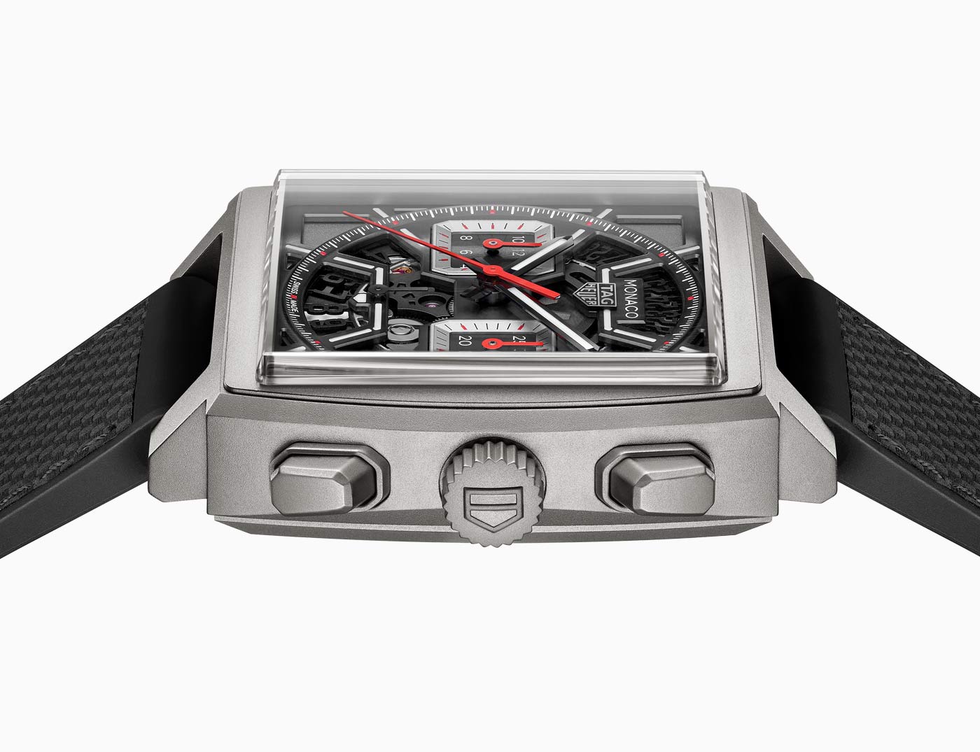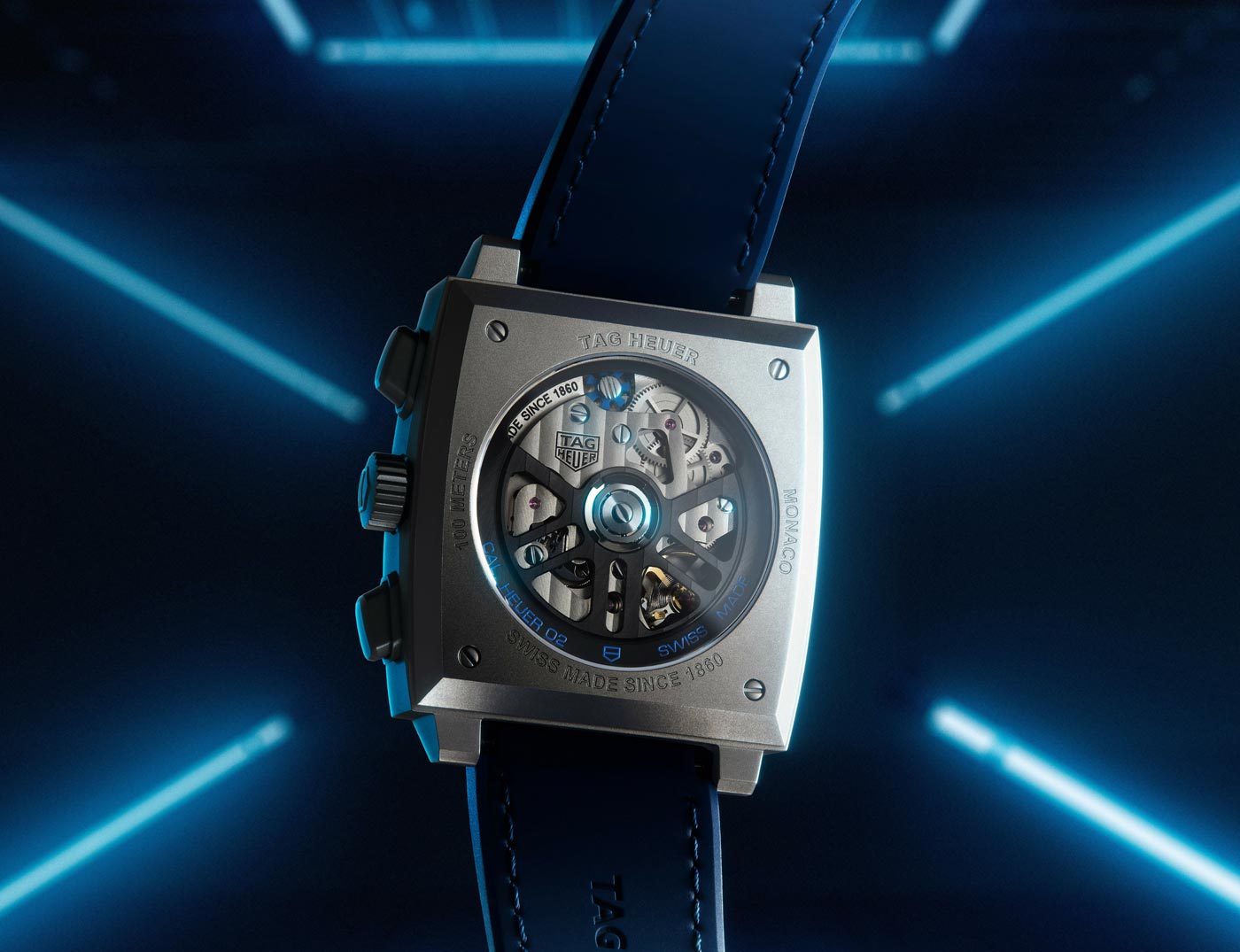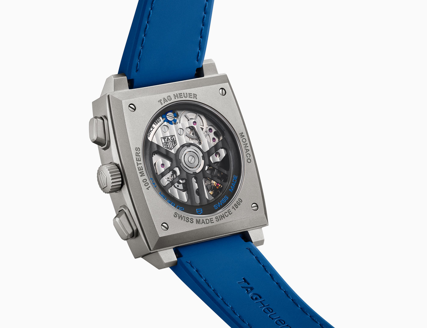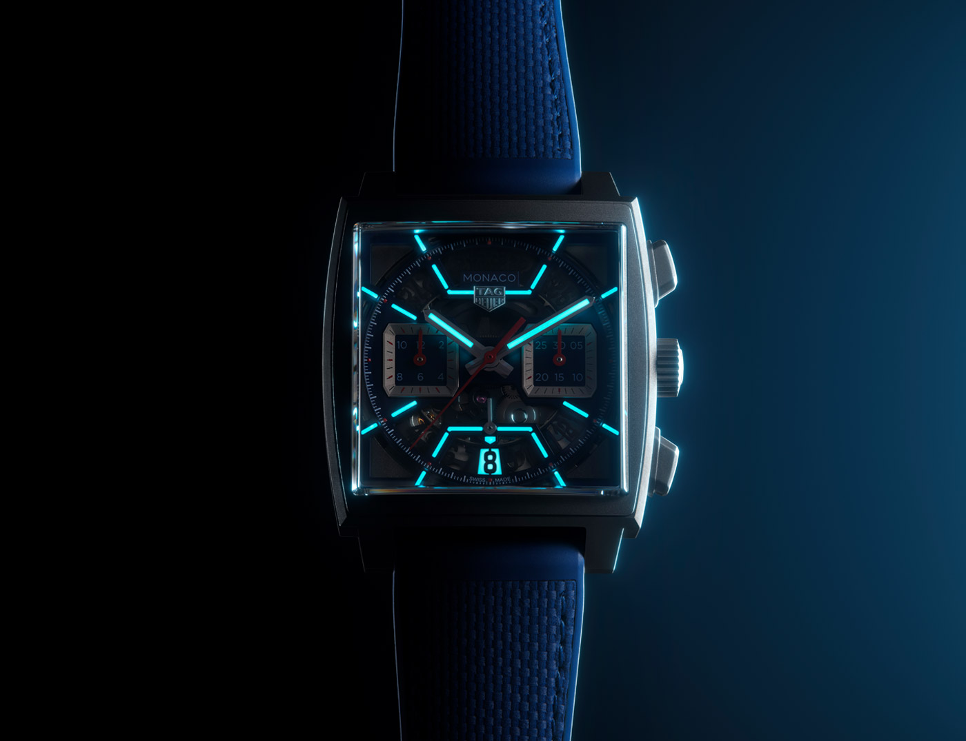 Released days before the event, the Monaco Chronograph Skeleton marks a new chapter in the evolution of the iconic Heuer Monaco, more than half a century after its inception. Available in Original Blue, Racing Red and Turquoise, the collection’s first-ever skeleton dial features luminescent details and intricate openwork inside a rugged 39-mm sandblasted titanium case. The Super-LumiNova treatment on the hands and indexes ensure optimum legibility in low-light conditions. TAG showcases the finishing on the in-house Heuer 02 movement that powers all three timepieces by using both a skeleton dial and a sapphire case back. This movement employs a conventional column wheel to activate the chronograph and boasts an 80-hour power reserve, one of the longest for a chronograph currently on the market.