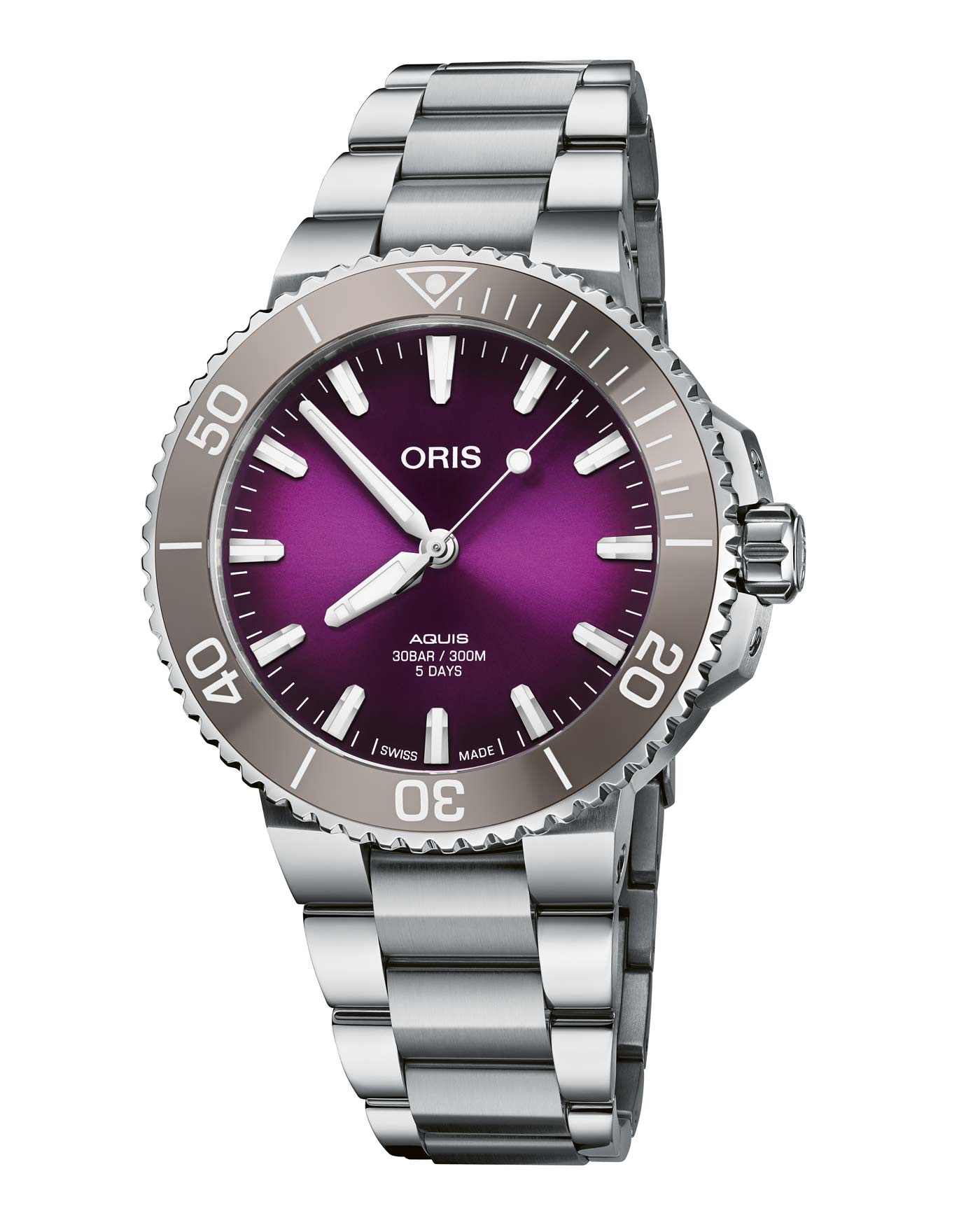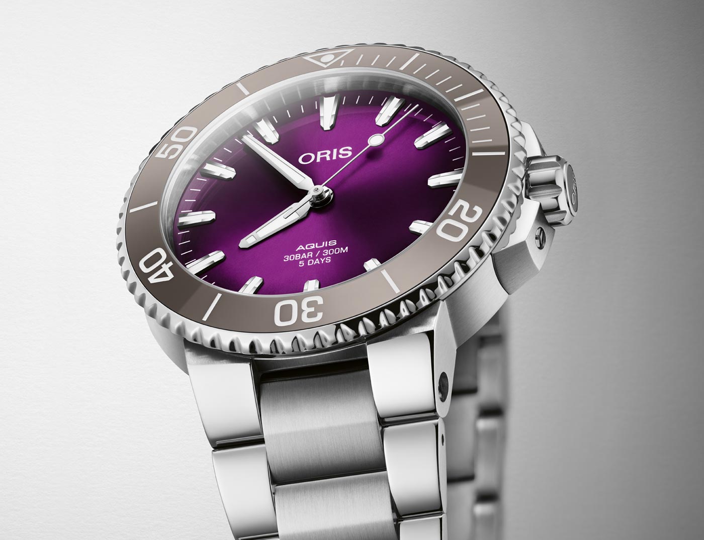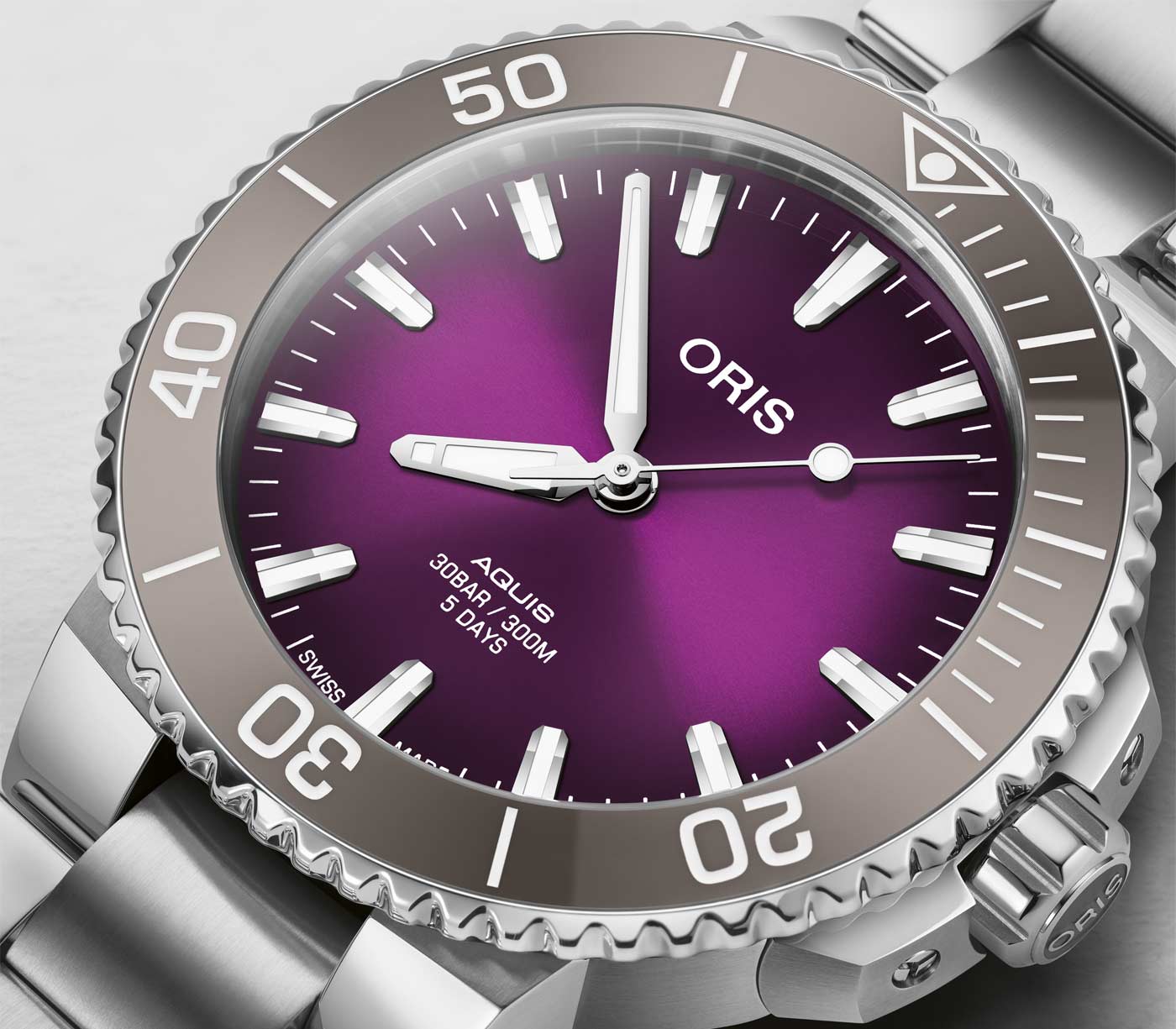 Oris designs its annual Hölstein Editions for loyal customers and mechanical watch enthusiasts. These timepieces are produced in limited quantities and include ‘features that will never come together again.’ Packed with firsts and special requests, the Hölstein Edition 2023 is strictly for the fans. For the first time Oris selected a model from the best-selling Aquis diver collection for a Hölstein Edition, with the brands first-ever purple dial – requested by the Oris community – as the design centerpiece. Also unique is that this Aquis dial has no date, in response to another request from fans. But the purple dial is still easily legible, with luminescent inserts in the hands and extra large hour markers. As a finishing touch, the back of the 41.50-mm stainless steel case is engraved with the edition number and printed with an illustration of the Oris Bear, diving in his scuba gear. Limited to 250 pieces.