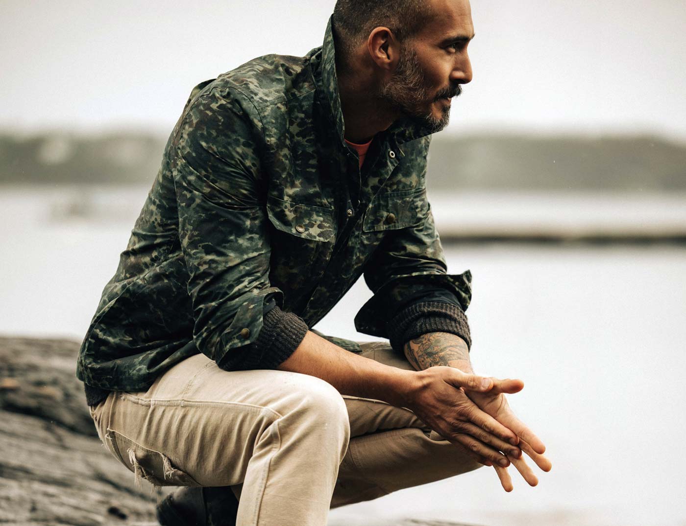 Taylor Stitch teamed up with Danner on a new collection of heritage-inspired gear. Dubbed Ridge & River, the lineup includes an organic cotton tee with a unique co-branded graphic, a waffle-knit henley sweater ideal for layering, the camo print waxed-canvas Venture Jacket and an exclusive version of Danner’s Ridge hiking boot. Both the Venture Jacket ($298.00) and Ridge hiker($470.00) are constructed with a ‘painted’ camo print waxed canvas developed and manufactured by Halley Stevensons in the UK, the leading expert in weatherproofed fabrics since 1864. All pieces are available in limited quantities from Danner and Taylor Stitch.