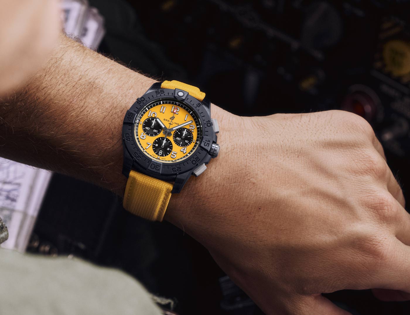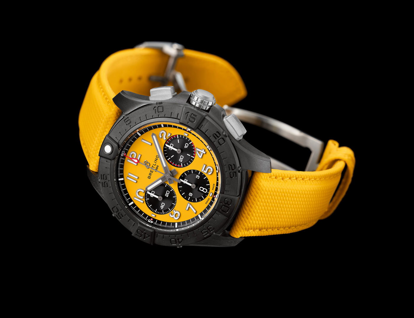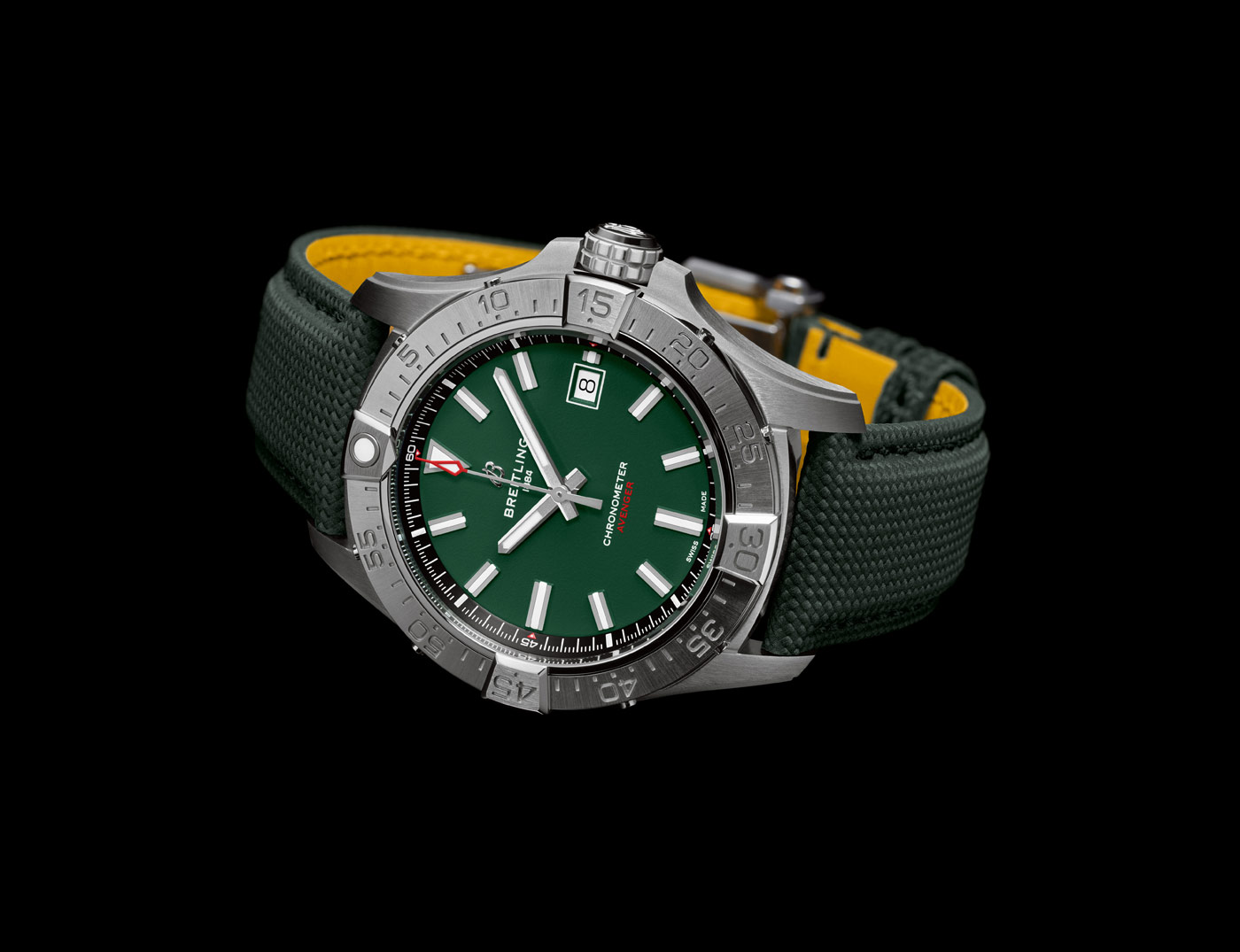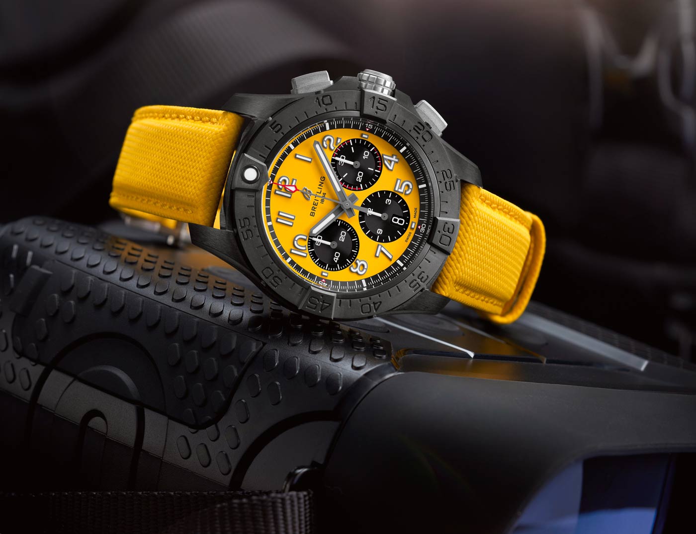 The lineups standout design is the Avenger Night Mission chronograph, available with a vibrant yellow or carbon black dial. It has a case constructed entirely of scratch-resistant ceramic, while the case-back, crown, pushers and buckle are crafted in solid titanium – providing the highest strength-to-weight ratio of any metal. On the dial, lume filled numerals made of carbon fiber provide superior legibility.