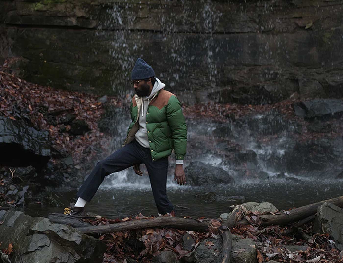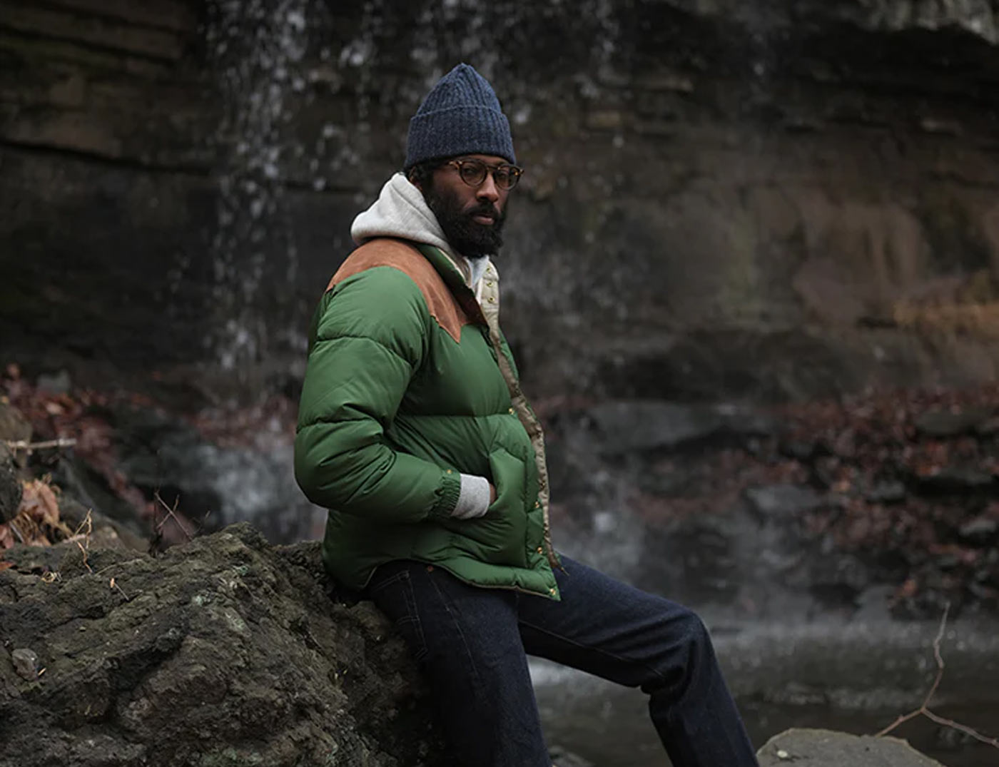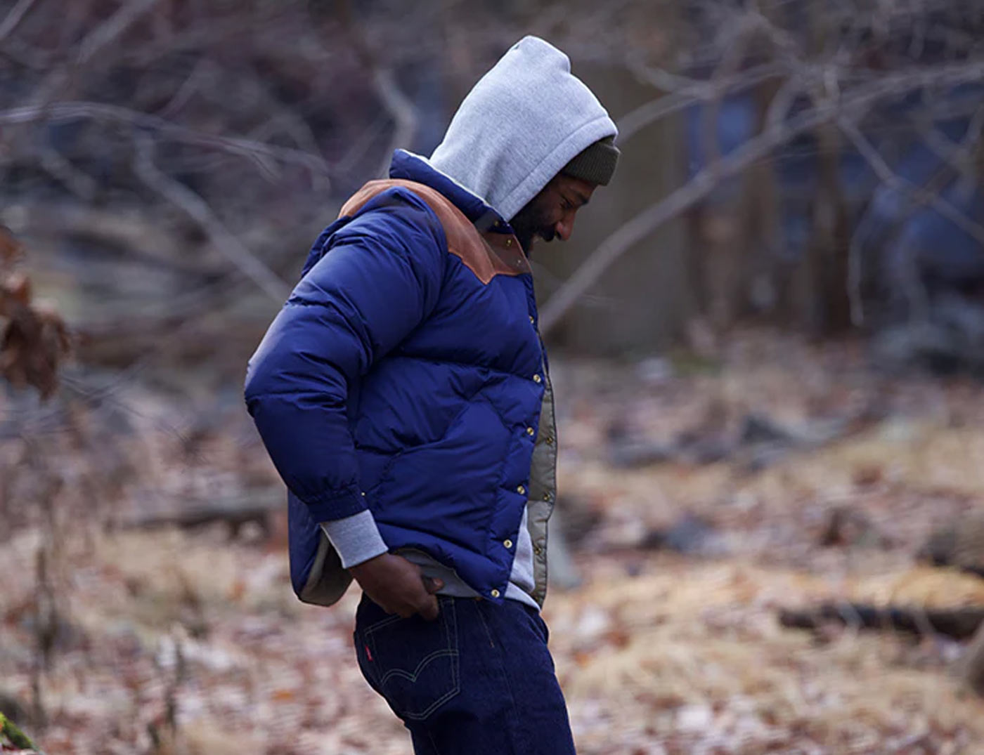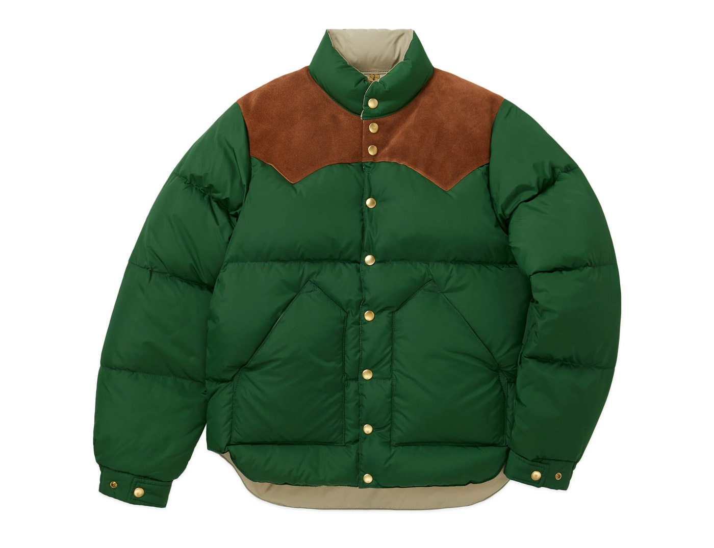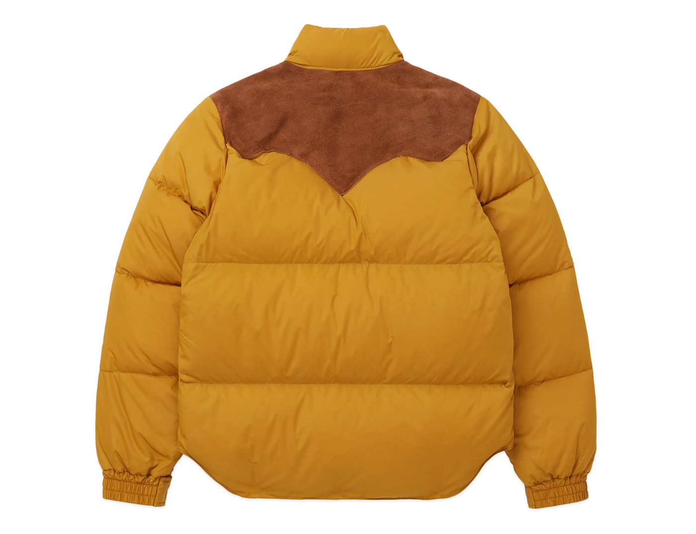 For their second collaboration, Blackstock & Weber dug through the Rocky Mountain Featherbed archives to bring the Christy Jacket back to life in three exclusive colorways. Rocky Mountain Featherbed was founded in Wyoming in the 1960’s. Their down vests were popular with skiers and cowboys, who appreciated the lightweight warmth and Western styling. The company folded in the 1980’s before it was revitalized by Japanese collectors who loved the brands quality and retro vibe. Available in Mustard, Navy and Bottle Green, this version of RMFB’s classic puffer features a water-repellent nylon taffeta shell, European down fill, brass snap closures and seamless leather yoke. The jackets are produced in Japan exclusively for Blackstock & Weber to the same exacting standards as the 1960’s original.