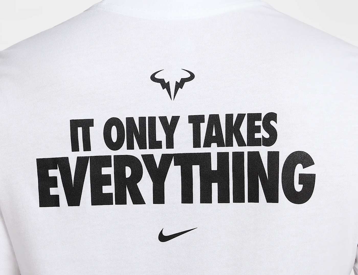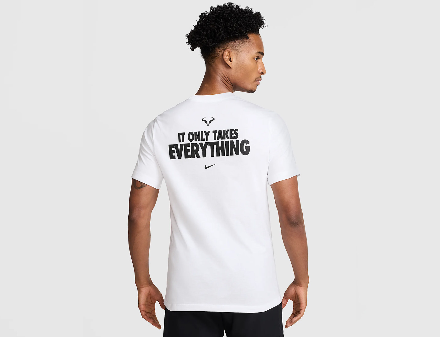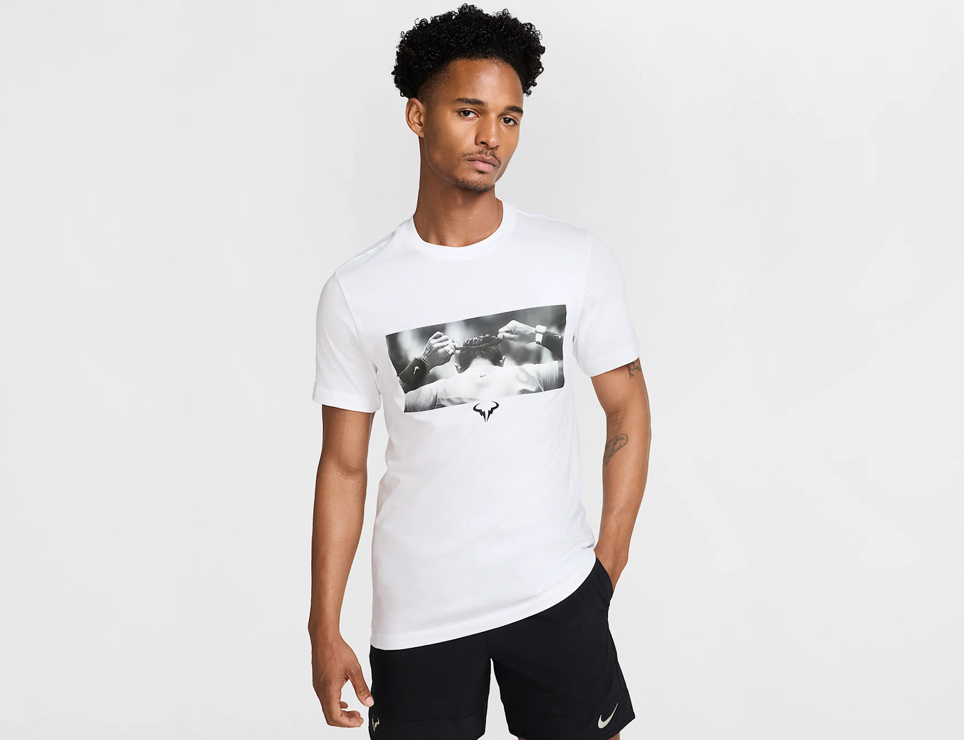 The King of Clay is retiring. After finishing as the year-end No. 1 five times, winning two Olympic gold medals, two Australian Open titles, two Wimbledon Championships, four US Open titles, and an astonishing 14 French Open men’s singles titles, Rafael Nadal is retiring as one of the all-time greats of professional tennis. A Nike athlete since he was 13 years old, the iconic Raging Bull symbol from Rafa’s signature collection has been a fan favorite for decades. The 2024 Davis Cup in Málaga, Spain will be the final tournament of his pro career. Nike is marking the moment with a commemorative t-shirt (natch) and short film narrated by the brand’s co-founder & Chairman Emeritus Phil Knight. ‘Rafa has been the perfect representative for the brand,’ Knight says. ‘He’s embodied our mentality to never give up and is maybe the most ferocious competitor that’s ever lived.’