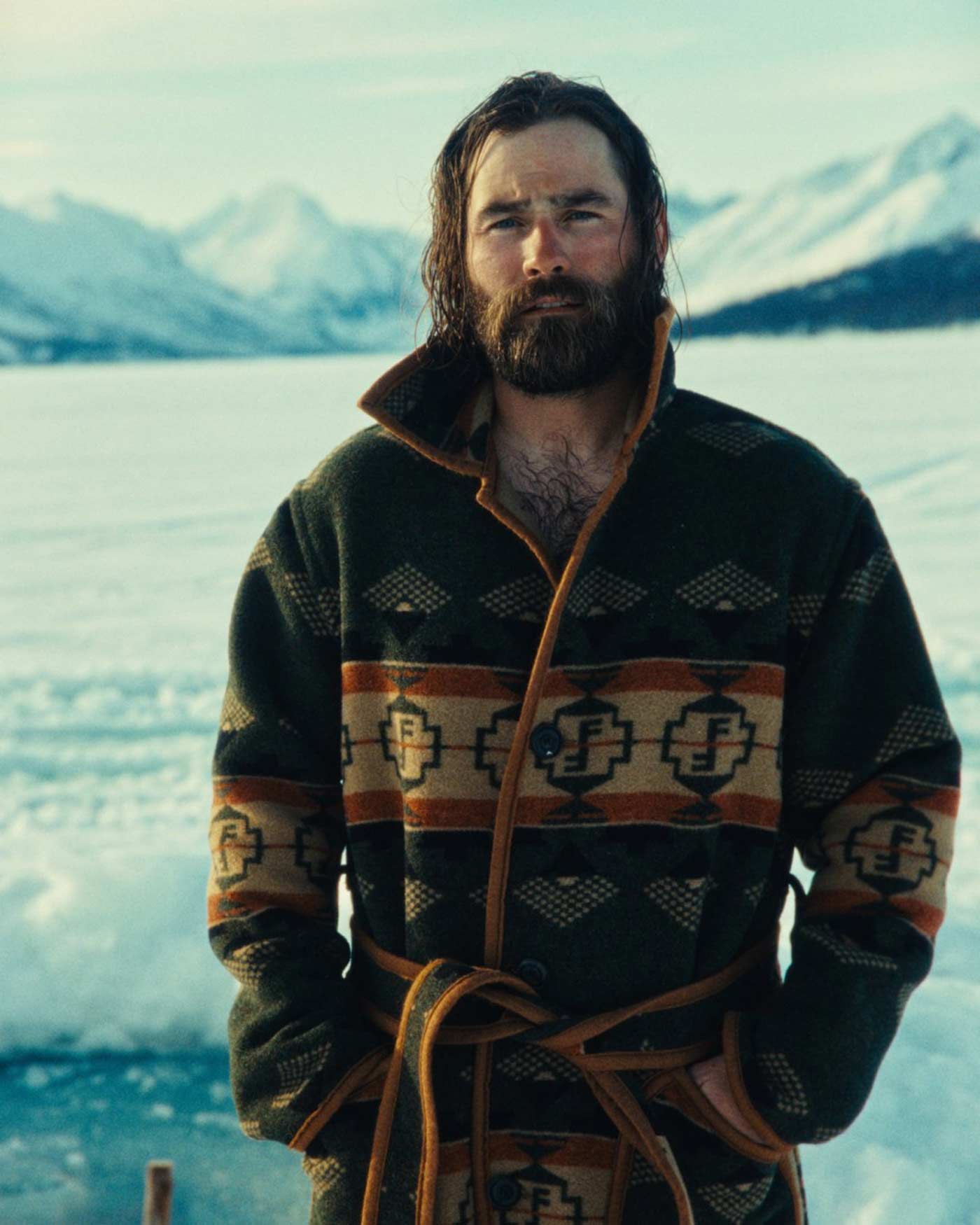 Filson’s new Forestry Wool Blanket Robe wears like a cozy cardigan. A limited holiday release, it’s made in the USA from a heavyweight wool/cotton blend that’s soft against the skin and as warm as.. well, a blanket. The thick wool blend is jacquard-woven in Italy with custom graphics that are based on an antique camp blanket from the Filson archive. Natural horn buttons and a long waist belt secure the front.
