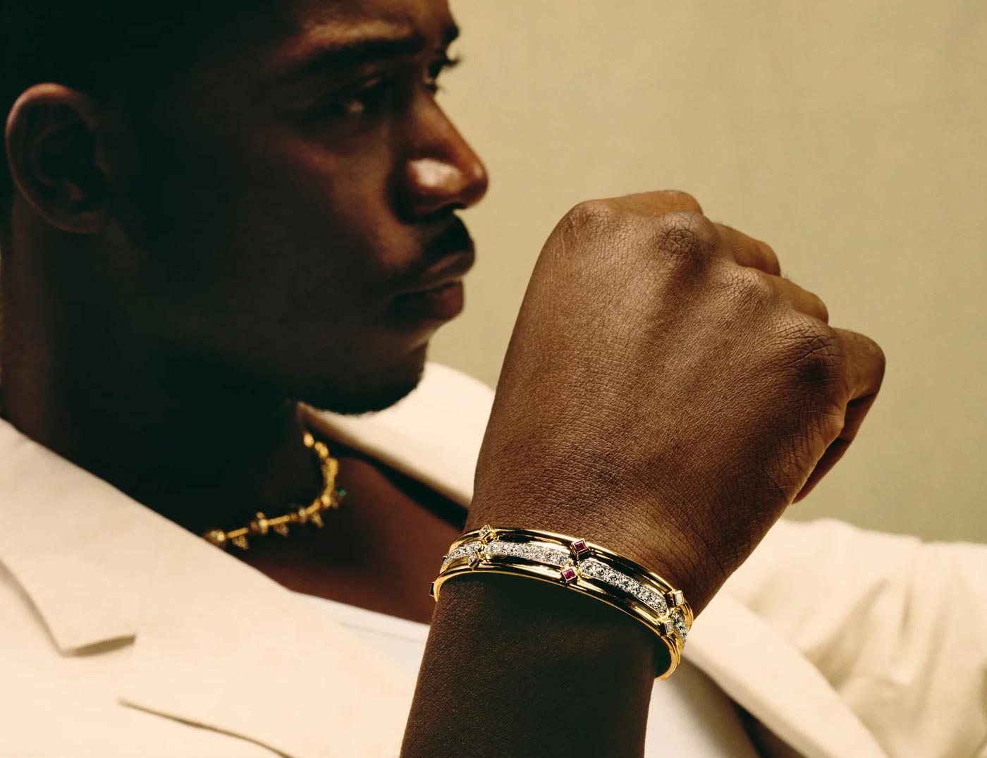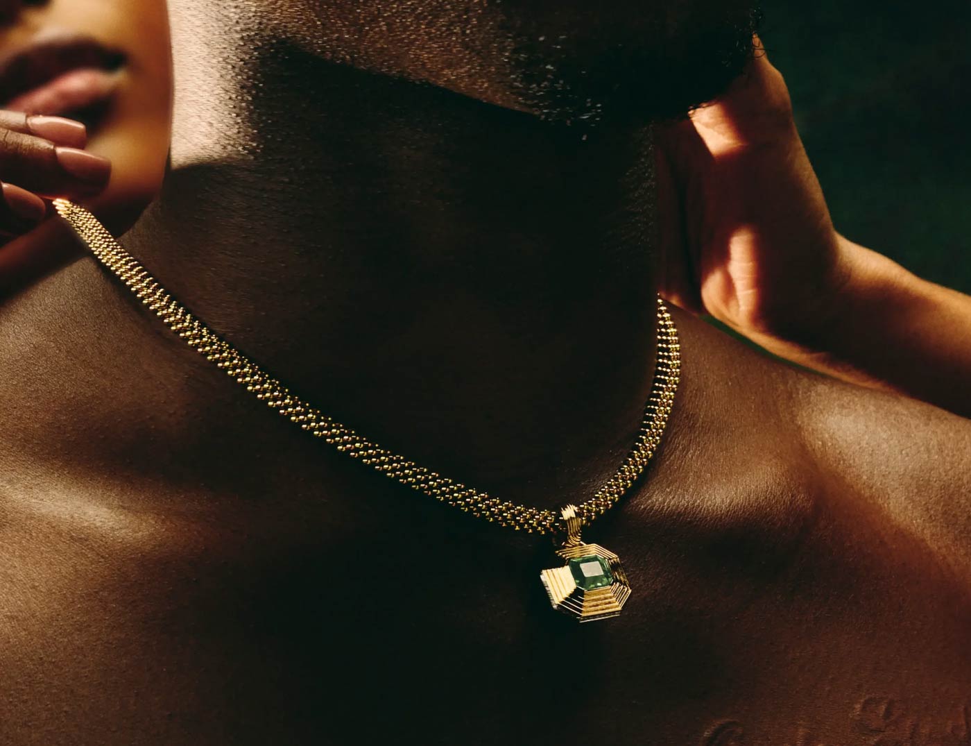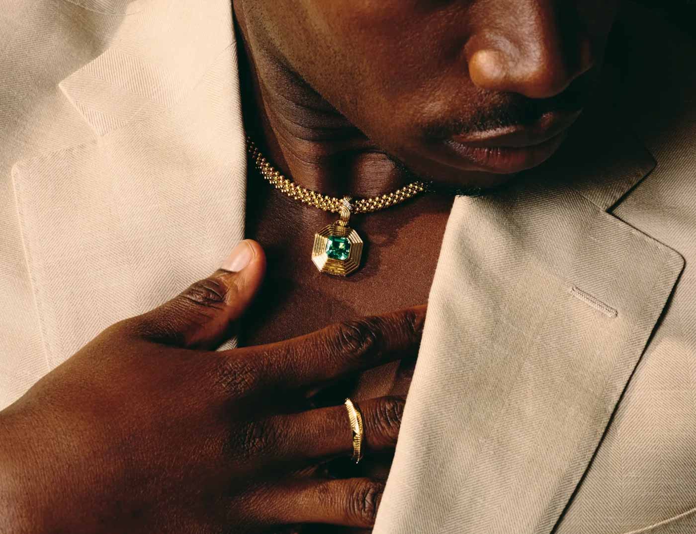 Damson Idris is officially an actor/designer. Best known for starring in John Singleton’s FX drama Snowfall, his new fine jewelry collection features a tightly edited selection of gem encrusted gold necklaces, bracelets and rings. Prices start at $3,750.00 for the 18K gold ‘Thin Ring’ and top out at $58,570.00 for a gold cuff with a stylized version of the brand’s interlocking double ‘D’ logo set with emeralds and diamonds. Influenced by his Nigerian roots, Idris’s designs are punctuated by African motifs and blend traditional goldsmithing with contemporary techniques. All DIDRIS pieces are crafted with ethically sourced metals and gemstones.