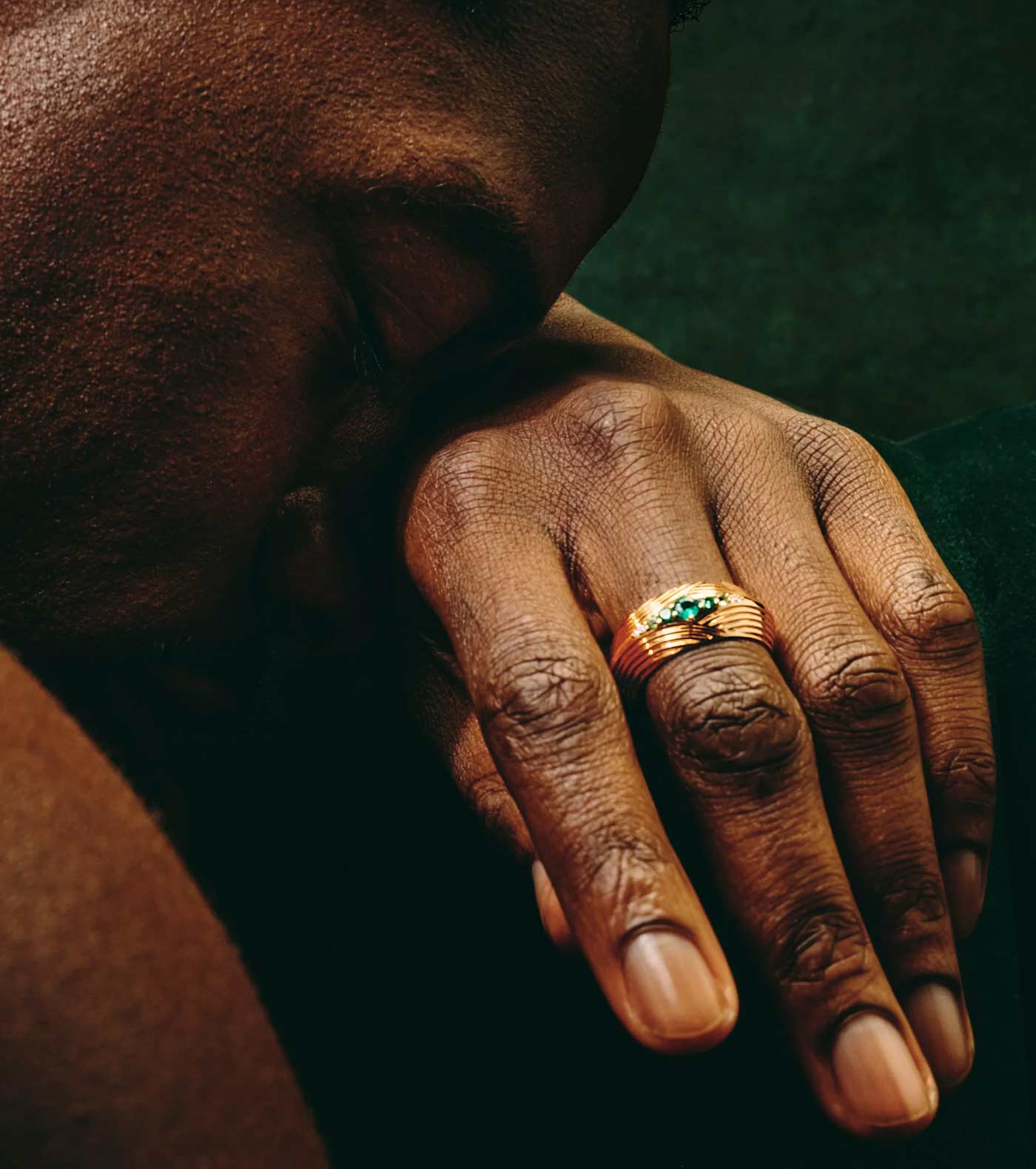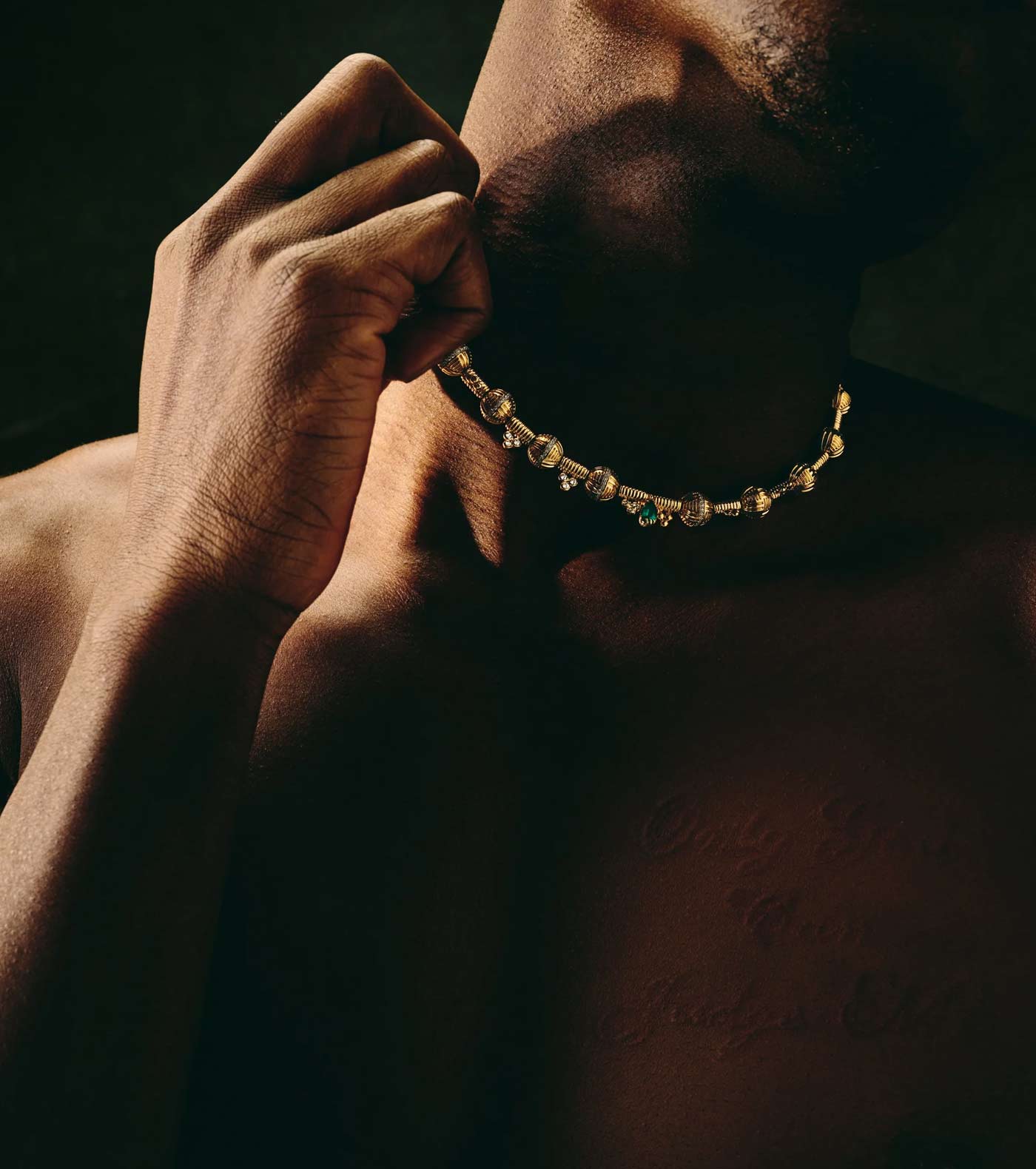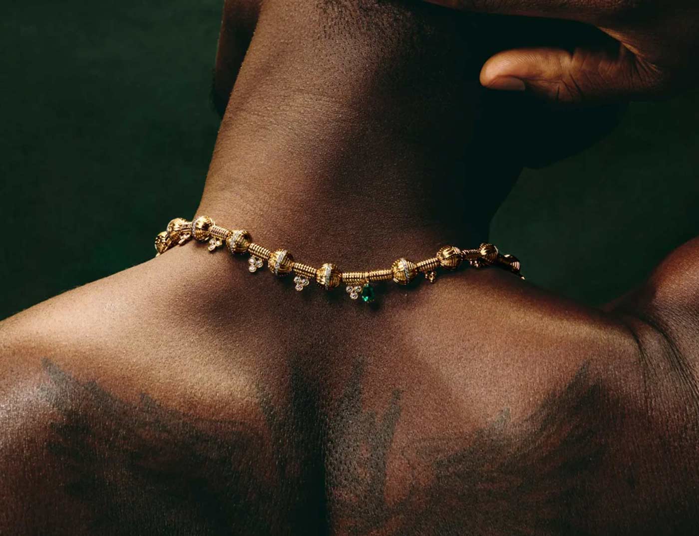 Damson Idris is officially an actor/designer. Best known for starring in John Singleton’s FX drama Snowfall, his new fine jewelry collection features a tightly edited selection of gem encrusted gold necklaces, bracelets and rings. Prices start at $3,750.00 for the 18K gold ‘Thin Ring’ and top out at $58,570.00 for a gold cuff with a stylized version of the brand’s interlocking double ‘D’ logo set with emeralds and diamonds. Influenced by his Nigerian roots, Idris’s designs are punctuated by African motifs and blend traditional goldsmithing with contemporary techniques. All DIDRIS pieces are crafted with ethically sourced metals and gemstones.