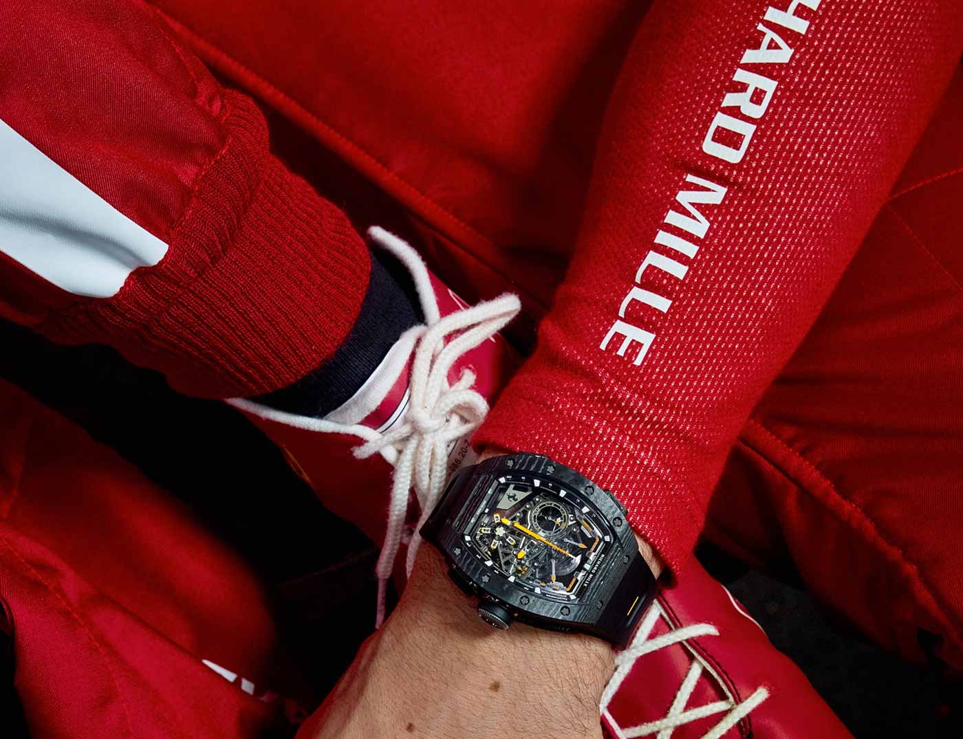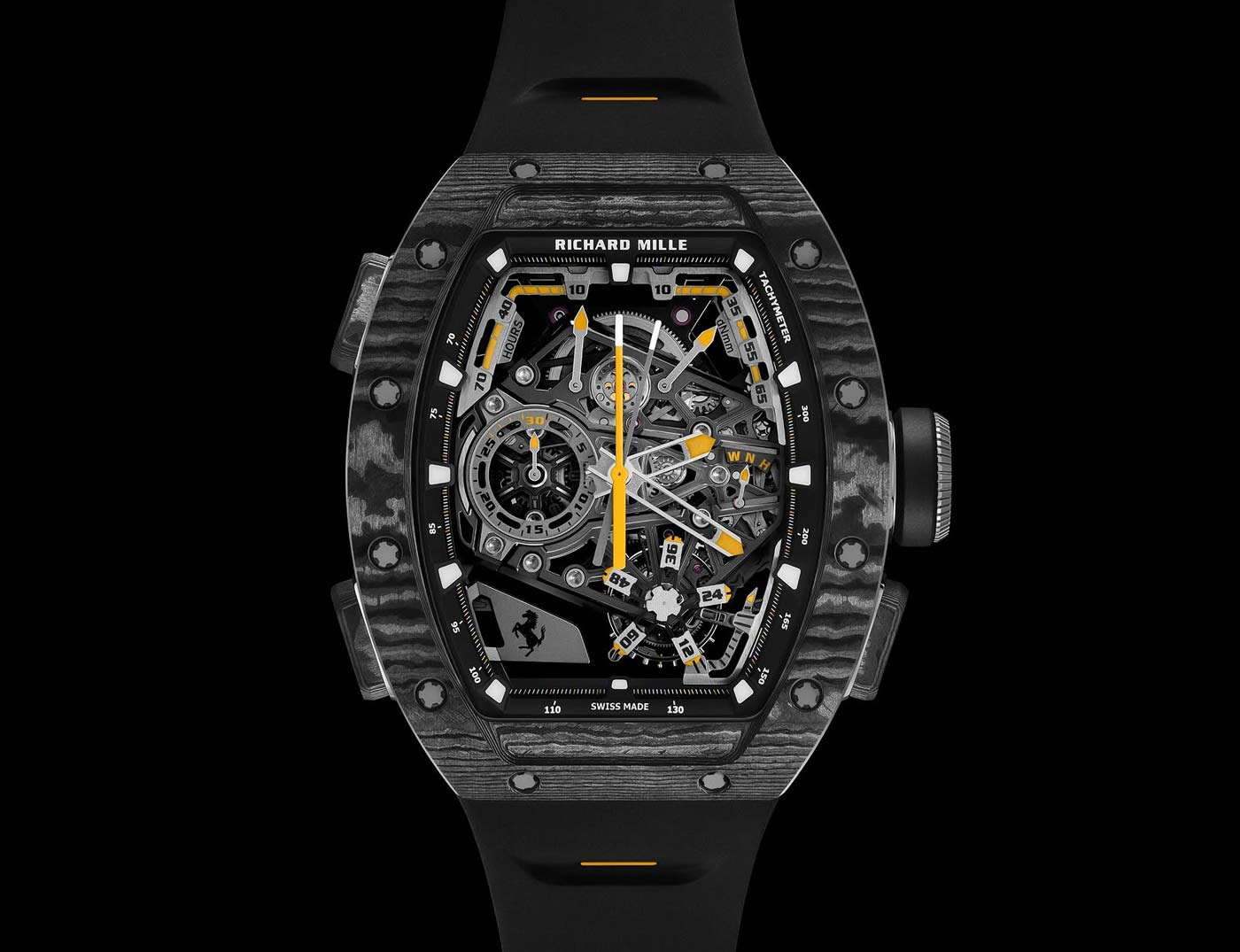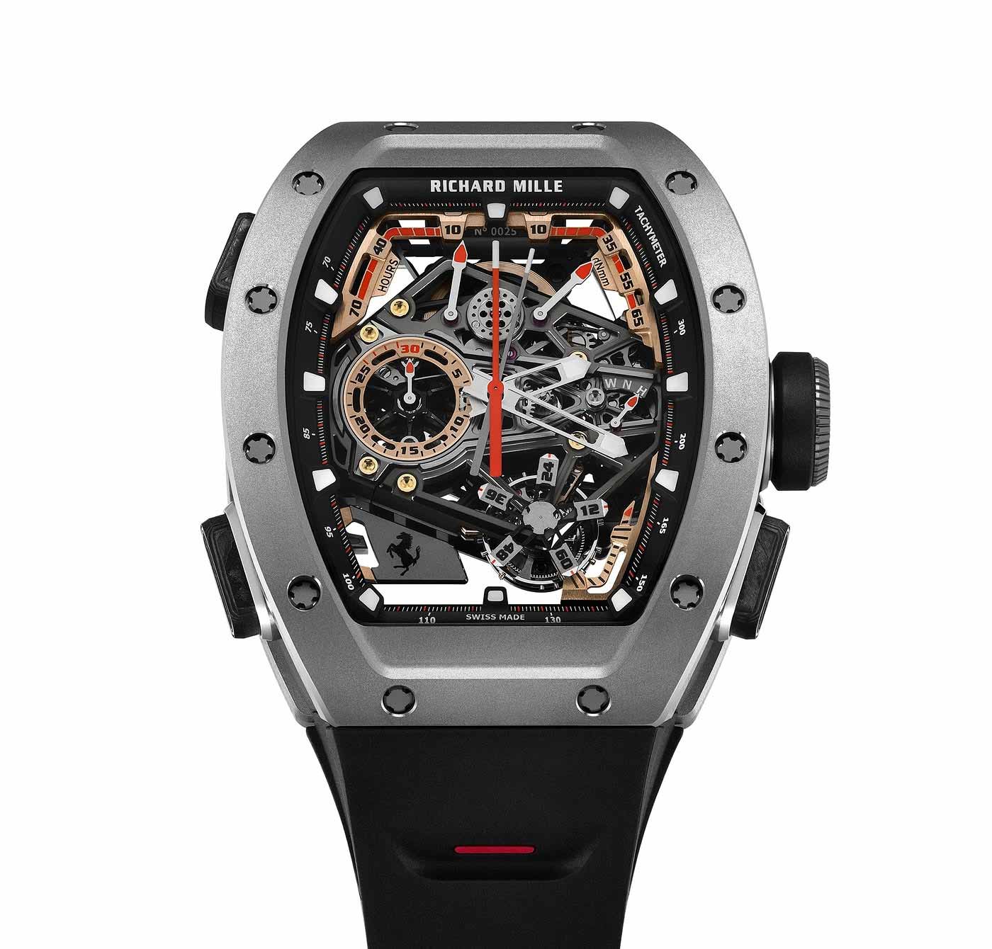 Richard Mille’s first collaboration with Ferrari produced a minimalist concept watch just 1.75 millimeters thick. For their second collaboration, Ferrari’s official timekeeper is doing what it does best, maximalism. The RM 43-01 Tourbillon Split-Seconds Chronograph Ferrari has a classic Mille silhouette, a curved tonneau style case made from lightweight materials – along with a skeleton dial, and a specialized openwork movement. Created in partnership with Audemars Piguet Le Locle, the manual-winding calibre is made with 514 meticulously crafted components. Showcasing exceptional expertise, the movement combines hours, minutes, split-seconds chronograph, 30-minute totaliser, and power-reserve, torque and function indicators.