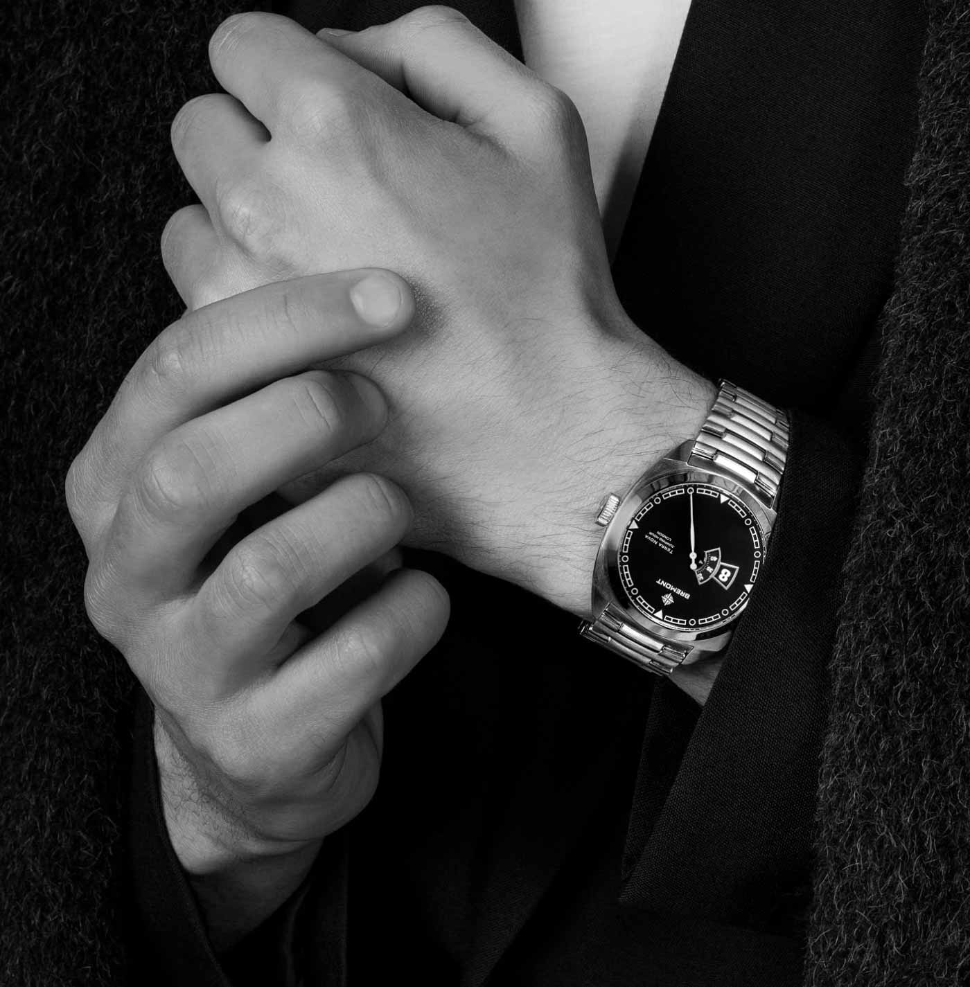 Inspired by early 20th-century military pocket watches, Bremont’s Terra Nova is a collection of rugged mechanical timepieces crafted from 904L stainless steel. The 40.5-mm Terra Nova Jumping Hour offers a refined, minimalist take on Bremont’s modern field watch design with a rare complication. Housed in a cushion-shaped stainless steel case, its powered by the exclusive BC634 Jumping Hour calibre. This high-torque movement ensures a precise jump of the hour disc.