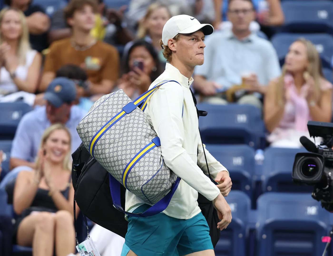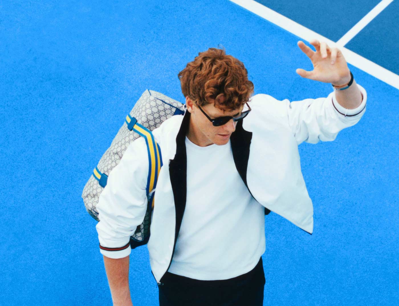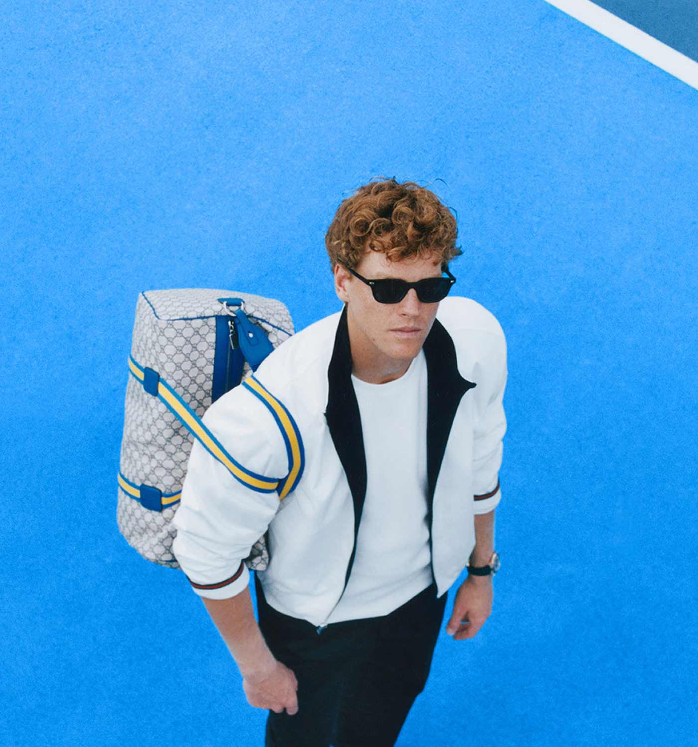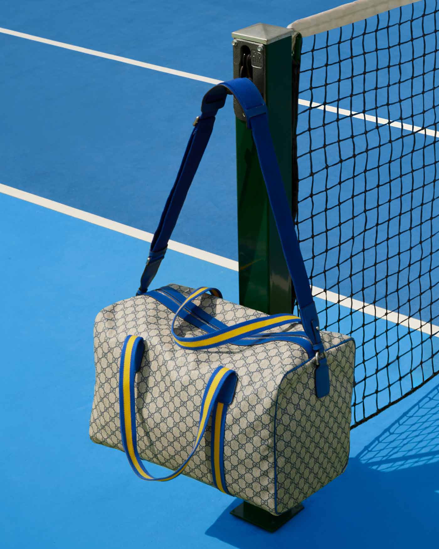 When Jannik Sinner strolled into Louis Armstrong Stadium for his first-round US Open match in 2023, he was already serving. The No. 6 seed was carrying a custom Gucci bag made from ‘GG’ monogram canvas trimmed with blue and yellow accents – the official colors of the US Open. Sinner enters this year’s tournament as the defending champion, world No. 1 in men’s singles and Global Brand Ambassador for Gucci. As a tribute to his success, Gucci released a special retail edition of Sinner’s custom US Open duffle bag. Made from the brand’s ‘GG Supreme’ coated-canvas in beige, it features blue/yellow webbing handles and cobalt blue leather trim. This particular shade of cobalt is officially known as US Open Blue.