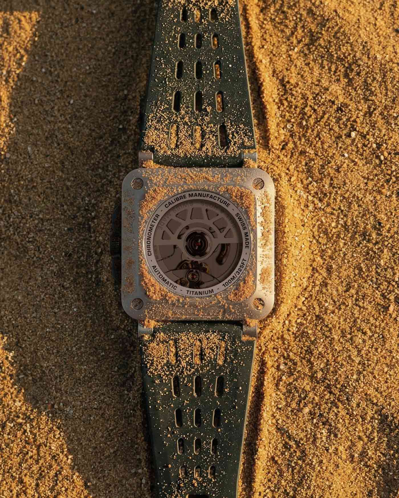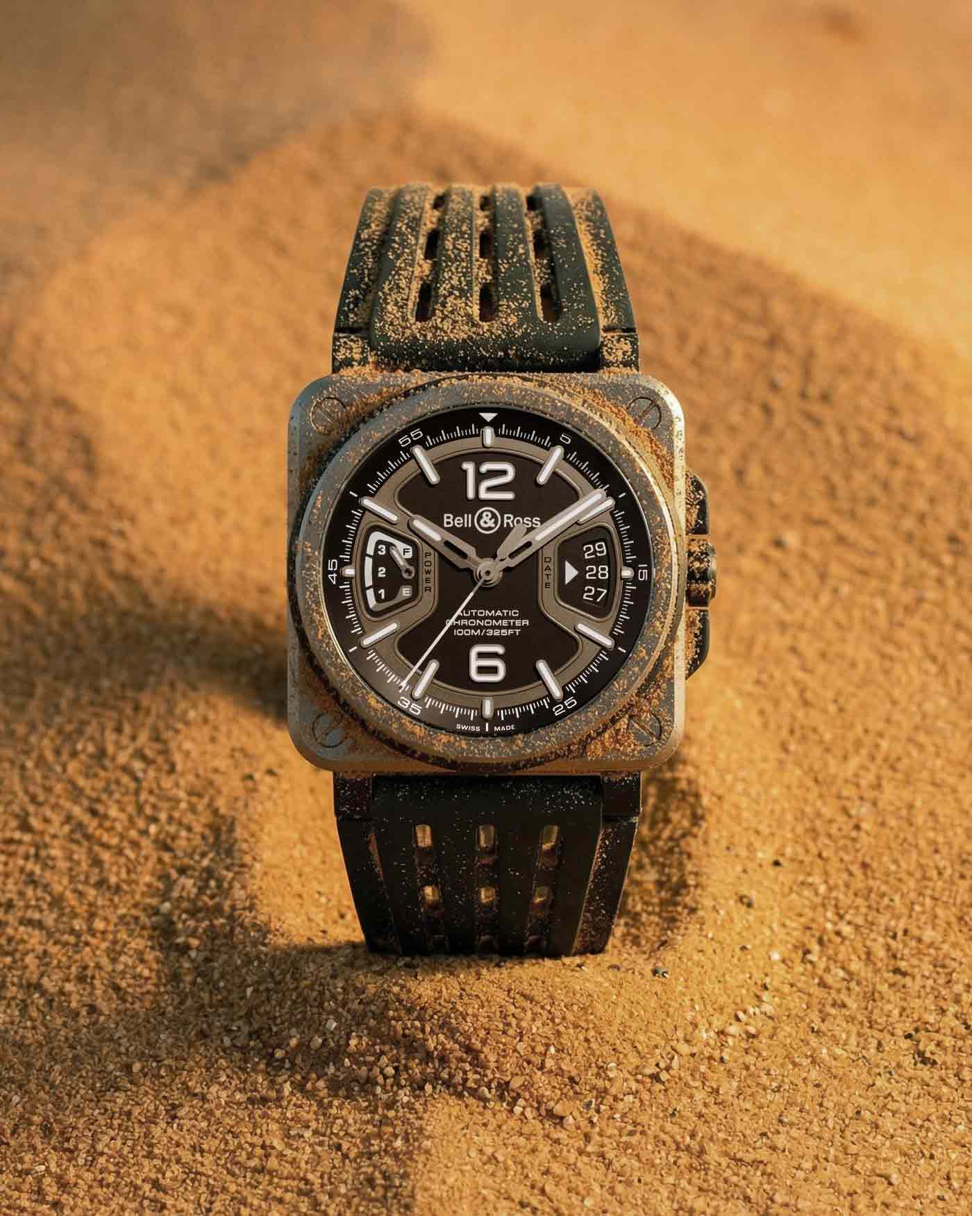 The BR-X3 Black Titanium is designed to withstand the extreme conditions of the Dakar Rally. Balancing innovation, precision and robustness, this new model features a 41 mm titanium case, COSC-certified in-house movement and optimal legibility. Its round dial framed by a square case, sharp and angular lines, and resolutely instrumental appearance reflect Bell & Ross’ original aeronautical inspiration.