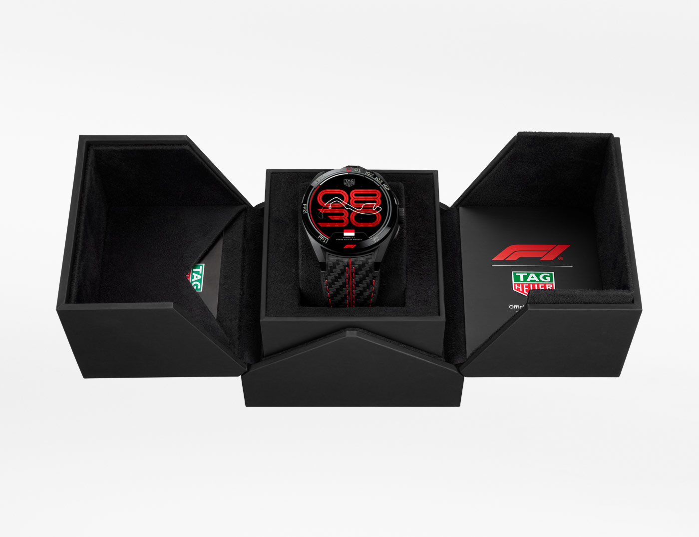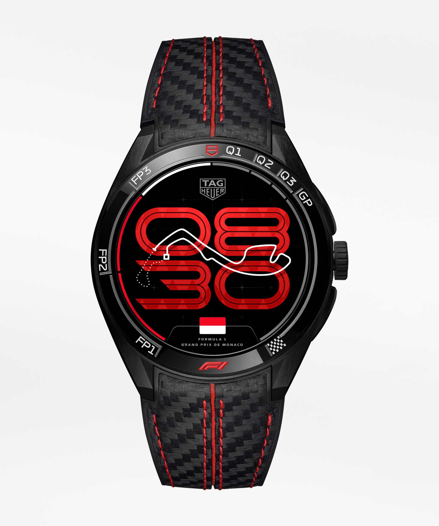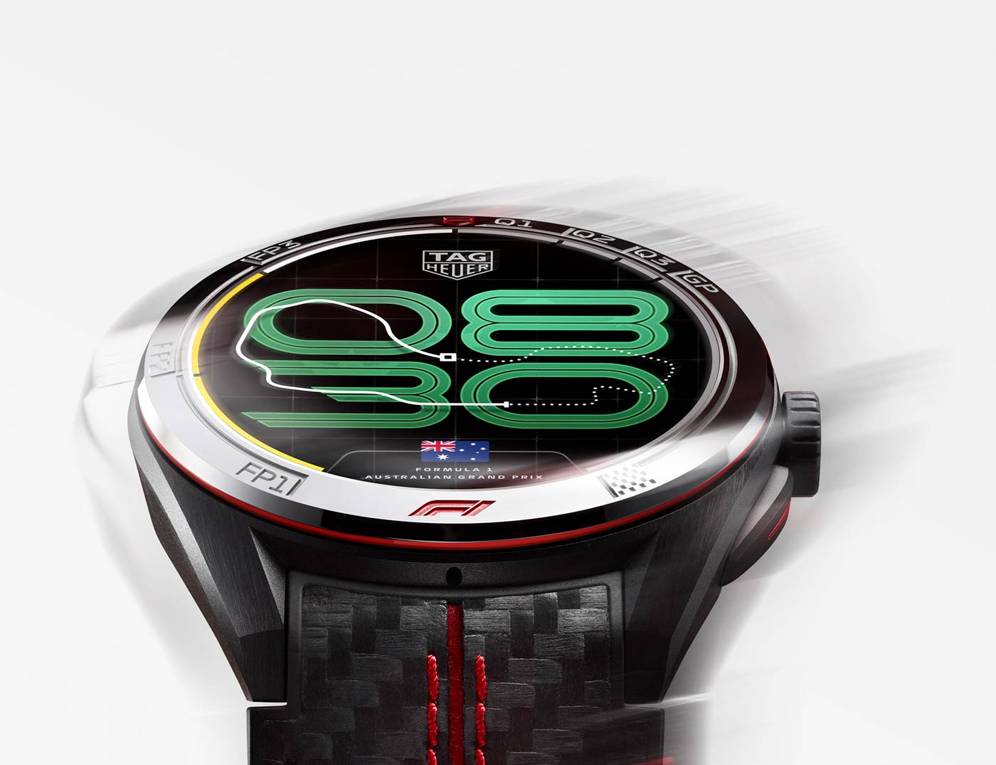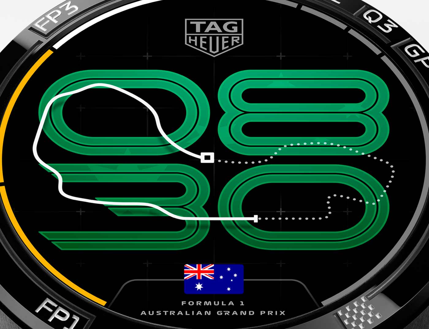 The TAG Heuer Connected Calibre E5 x Formula 1 brings every Grand Prix to life, maintaining a constant connection to the championship. At the center of this edition is the Race Track watch face. When selected, this face displays digital time underneath a track outline and adapts to the Grand Prix calendar – updating the country flag, race name, and track silhouette. A moving dot travels around the track to indicate the passing seconds. Alongside the Race Track face, all the Connected faces are redesigned to match this F1 edition and the physical watch, reflects the spirit of each track. Exclusive to this edition is the Formula 1 app, a direct line to the championship. Accessible via the watch menu, it provides access to the season calendar, GP schedules, post-race results, and driver/team standings, sourced directly from the race schedules. It ensures that no result, session or ranking is missed. Every element of the system is designed for the ultimate 360 F1 experience.